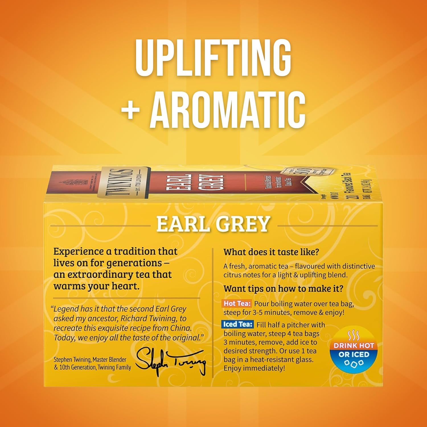 Twinings Earl Grey Black Tea Individually Wrapped Bags, 20 Count (Pack of 6), Flavoured with Citrus and Bergamot, Caffeinated, Enjoy Hot or Iced, 120 Teabags