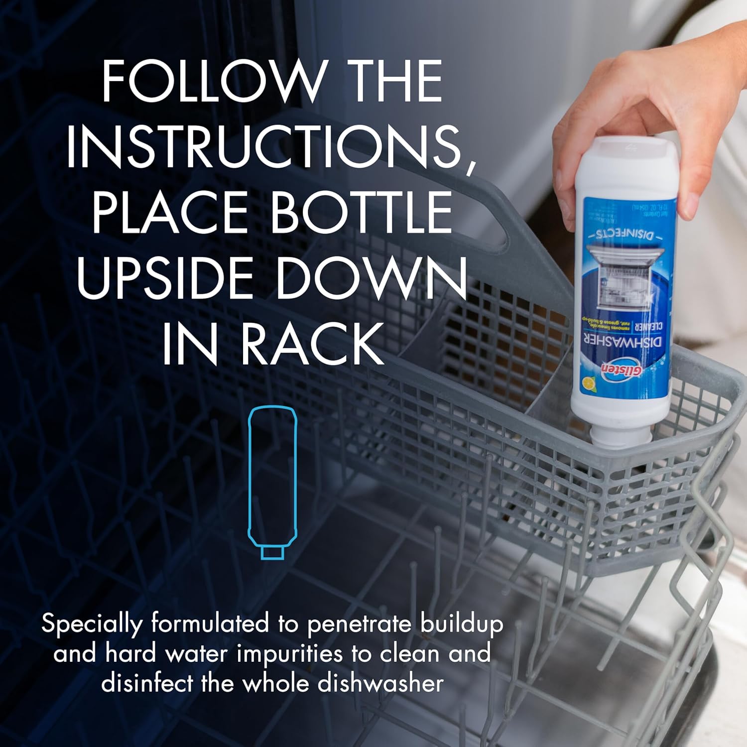 Glisten Dishwasher Cleaner, Removes Limescale, Rust, Buildup, and Grease, Lemon Scent, Made in the USA, 12 Ounce Bottle, 3-Pack
