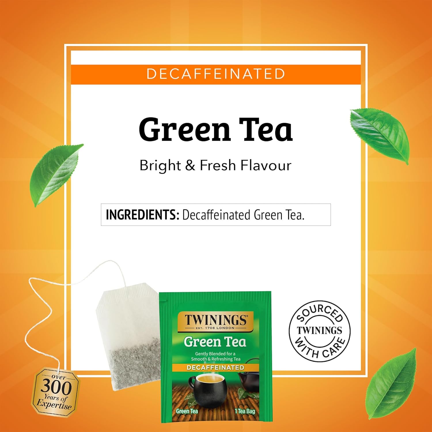 Twinings Decaffeinated Green Tea Individually Wrapped Bags, 20 Count (Pack of 1), Smooth Flavour, Enticing Aroma, Enjoy Hot or Iced, 20 Teabags