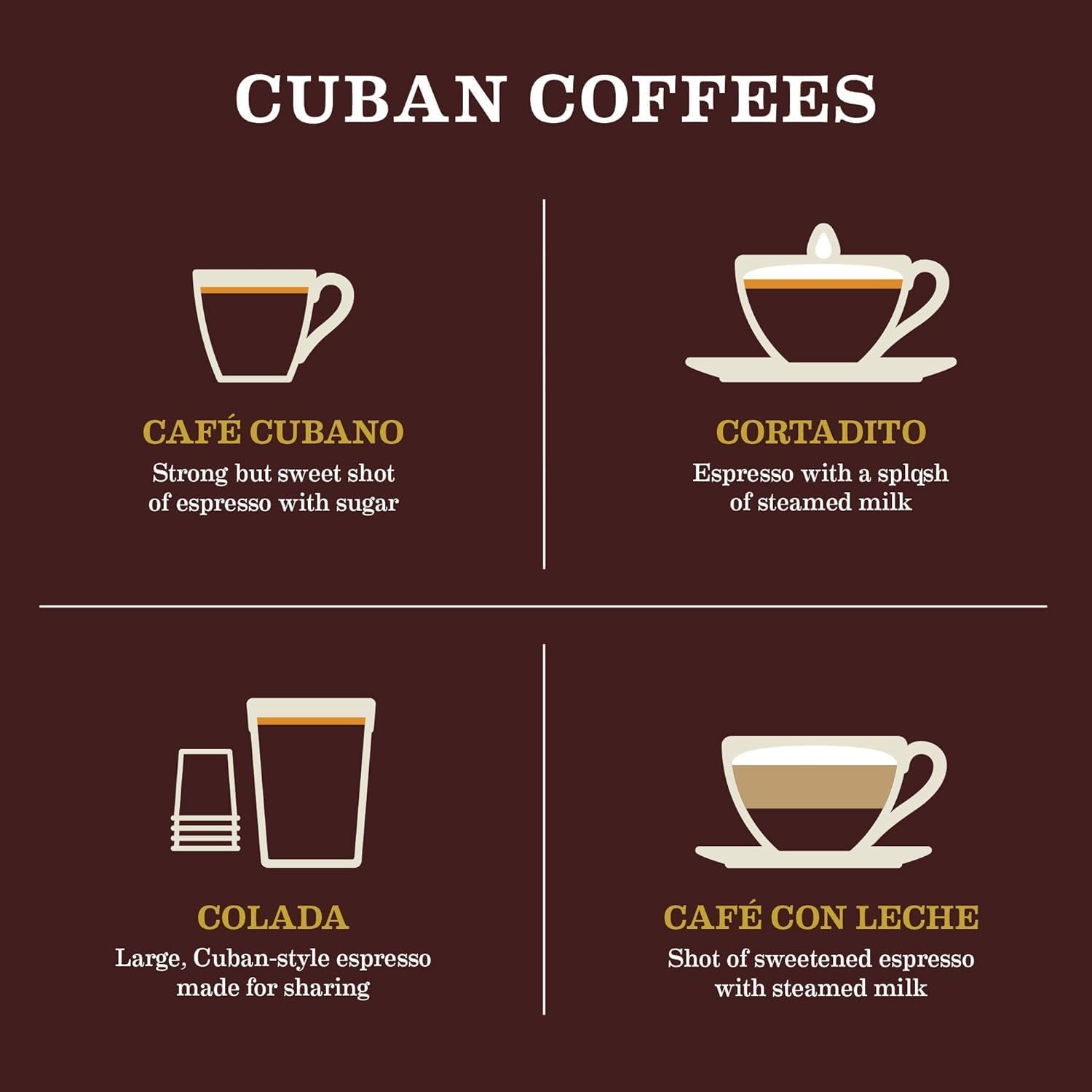 - A NOD TO OUR Cuban heritage where coffee means espresso; nutty, sweet with hints of citrus, and a smooth finish.