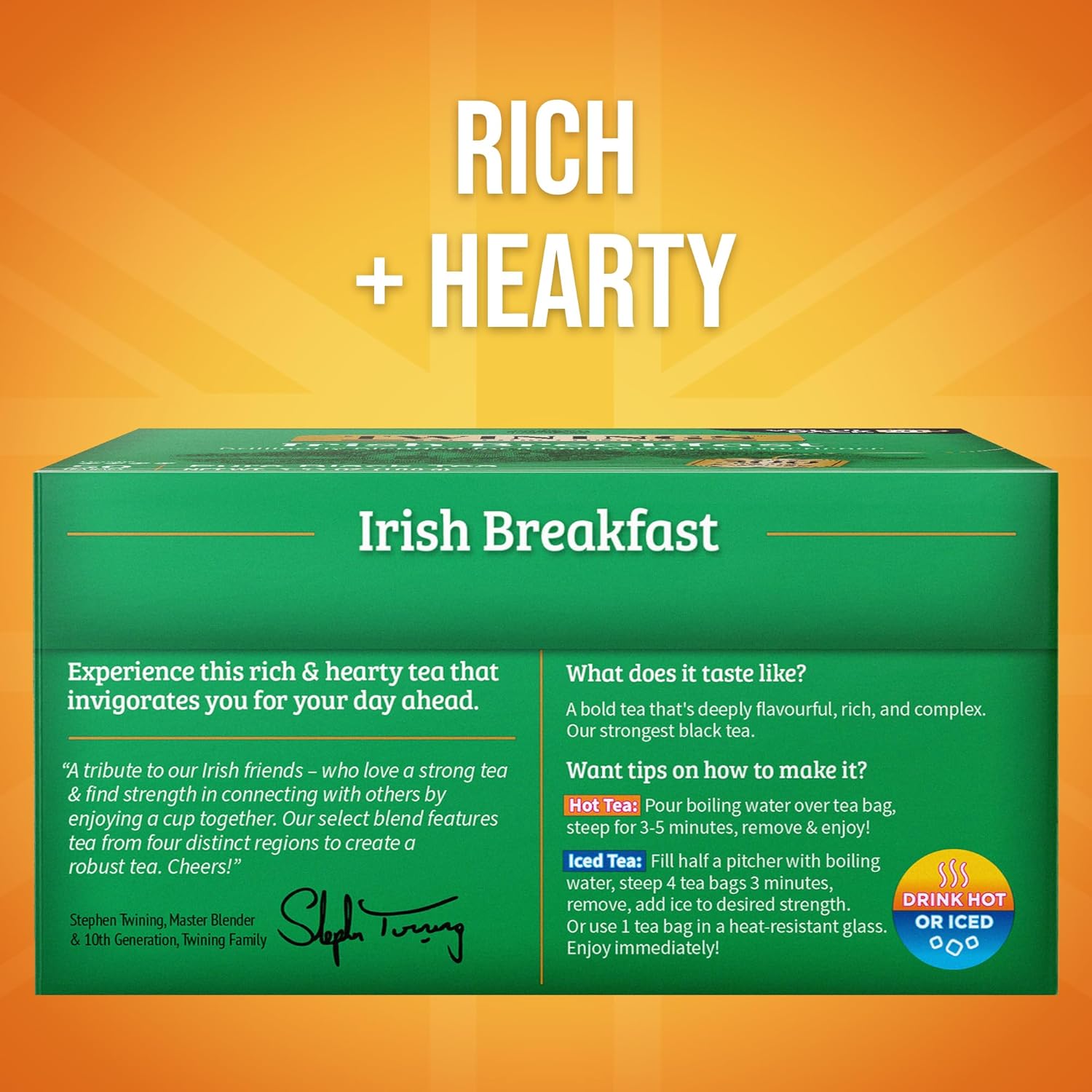 Twinings Irish Breakfast Black Tea Individually Wrapped Bags, 50 Count (Pack of 6), Flavourful, Bold, Robust, Caffeinated, Enjoy Hot or Iced, 300 Teabags