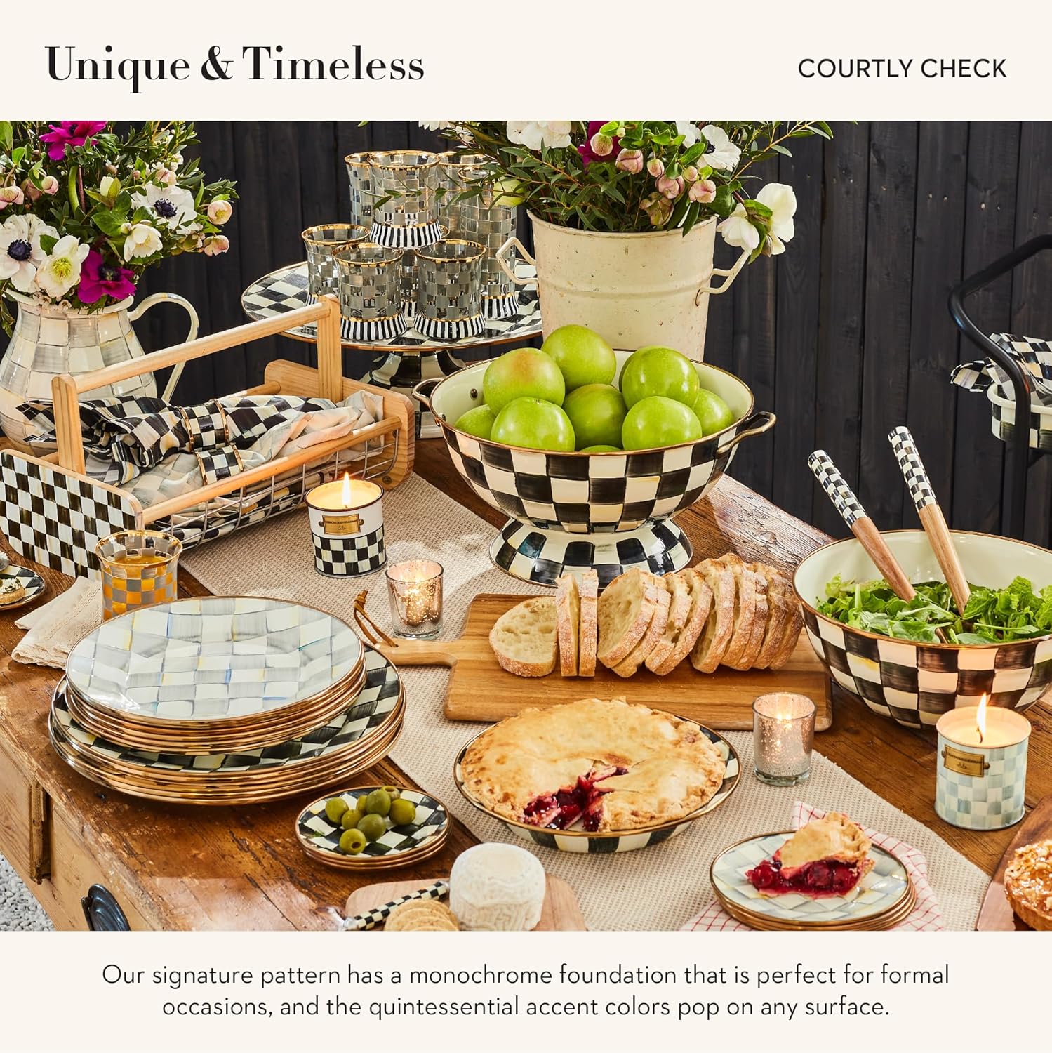 - Material : Heavy-gauge, hand-glazed steel underbody with hand-painted Courtly Checks, rimmed in bronzed stainless steel. Pieces may vary due to the handmade nature of each product. Imported. Heavy-gauge, hand-glazed steel underbody with hand-painted Courtly Checks, rimmed in bronzed stainless steel. Pieces may vary due to the handmade nature of each pro… See more