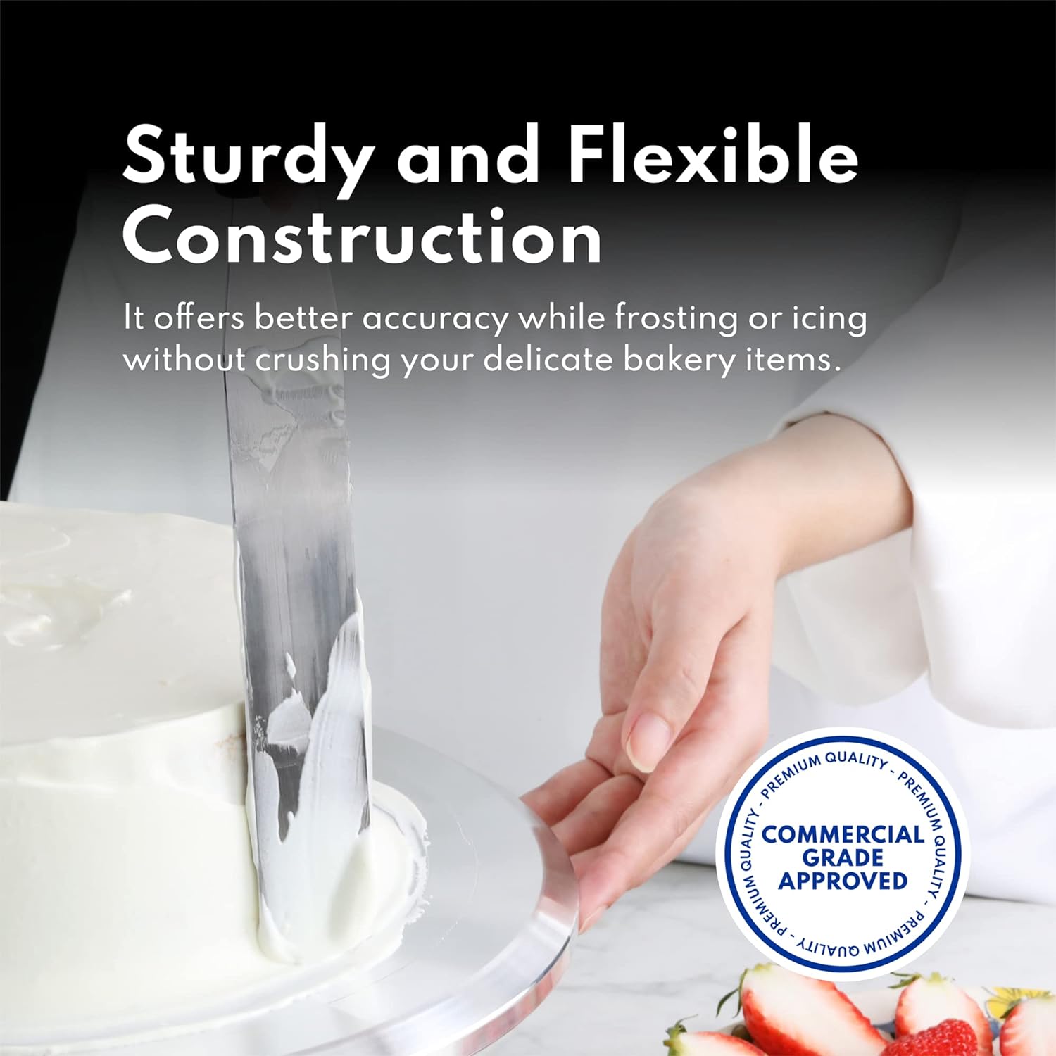 - Flexible stainless steel blade is the perfect thickness for gliding over icing
