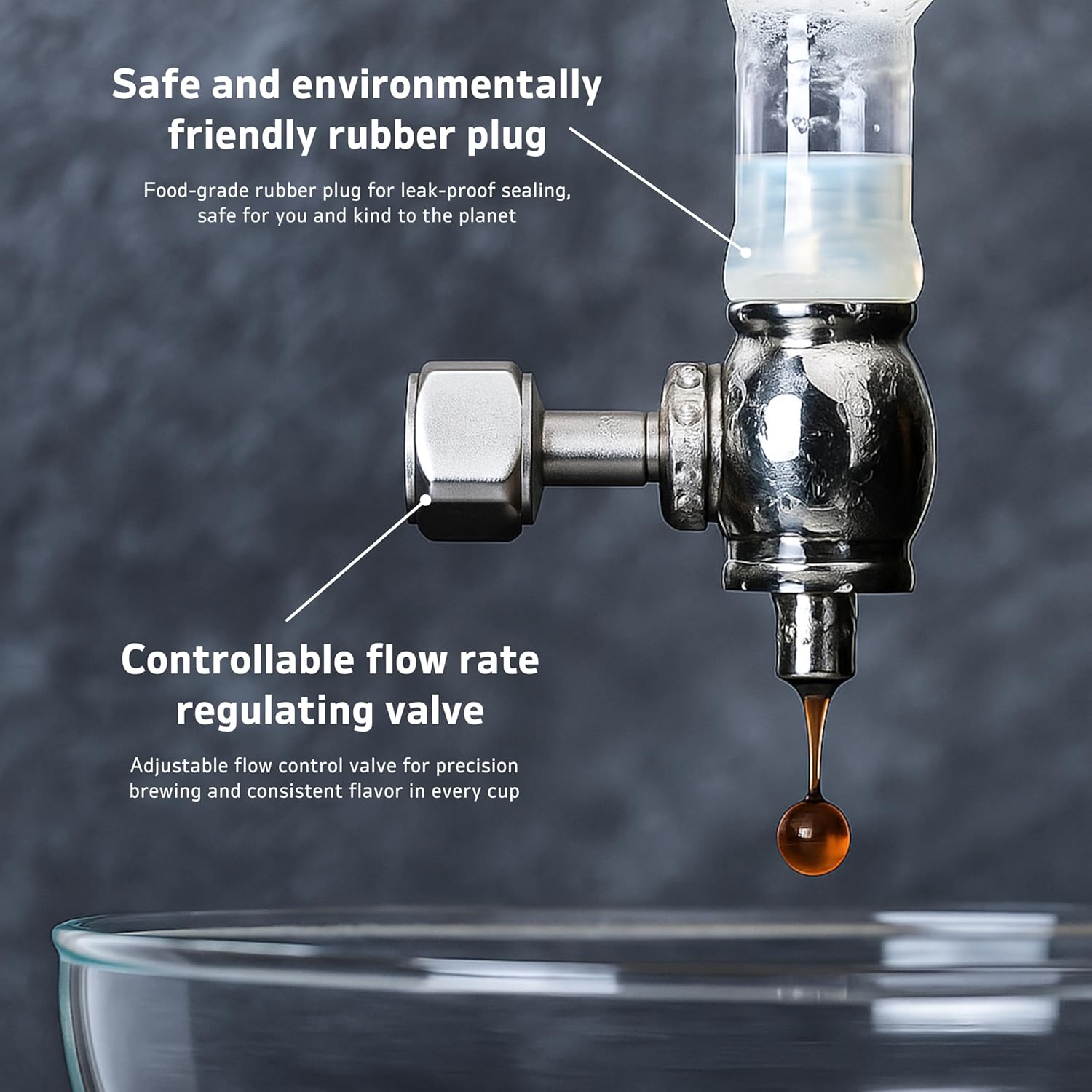 - Including glassware, filter and adjustable valve to perform dripping