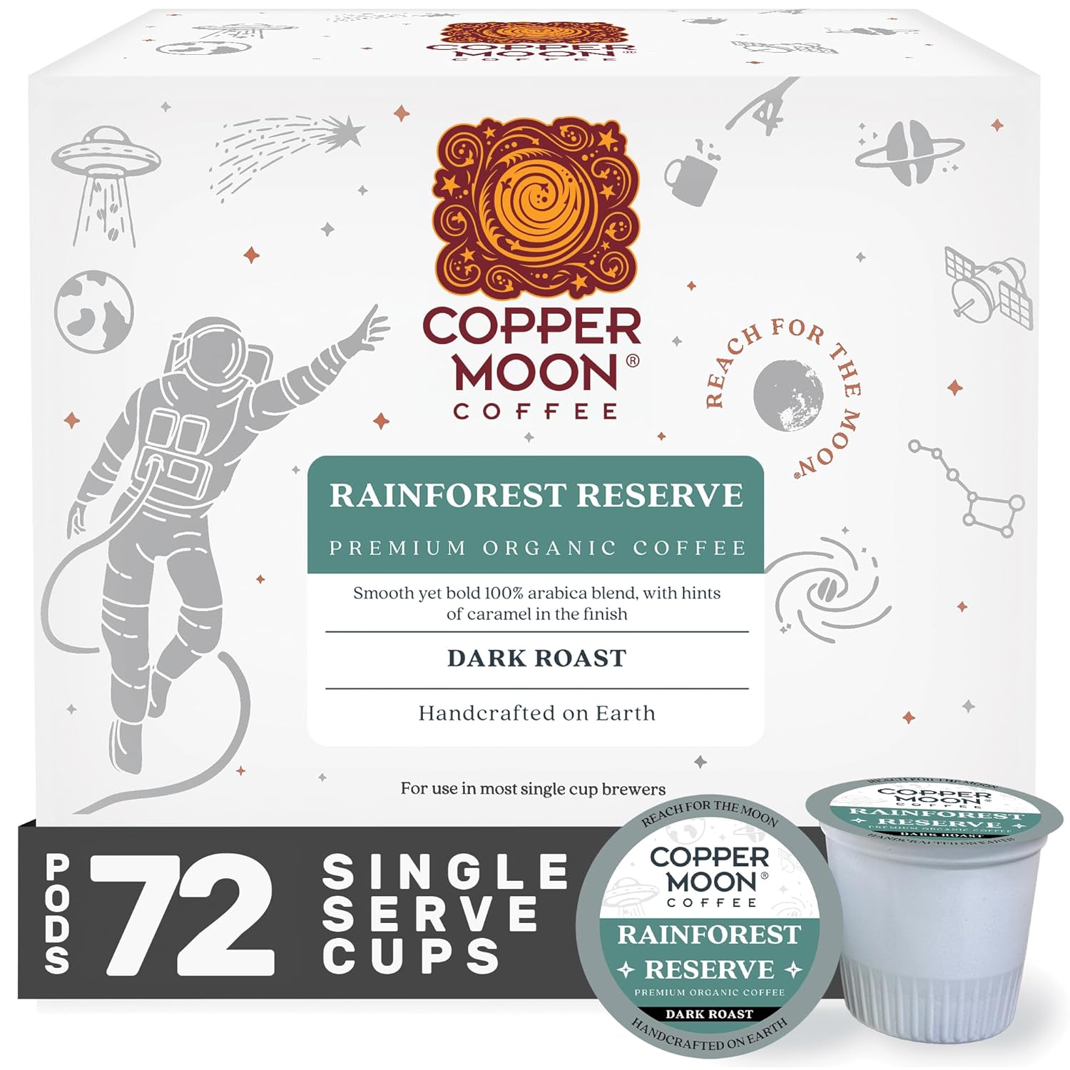 Copper Moon Single Serve Coffee Pods for Keurig K-Cup Brewers, Dark Roast, Rainforest Reserve Blend, 72 Count