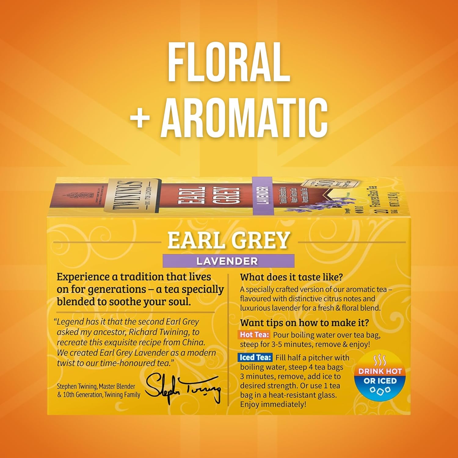- EARL GREY WITH AN AROMATIC TWIST: Intoxicating aroma and slightly sweet taste, the uplifting flavour of real Lavender creates an aromatic tea sure to brighten your day.