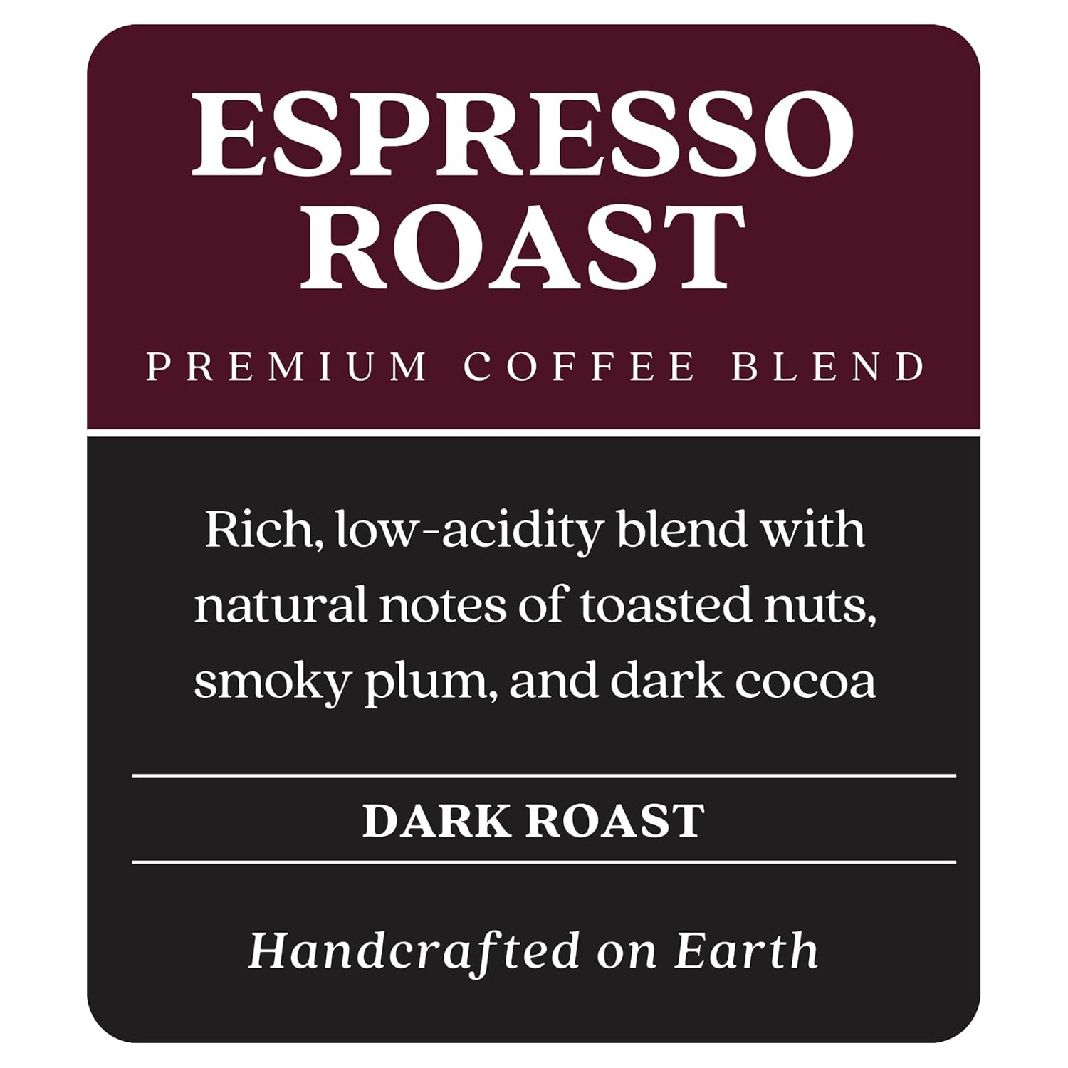 - CAFÉ QUALITY COFFEE BREWED BY YOU: Espresso roast is a hearty blend but silky smooth and offers flavor notes of cocoa, dark cherry and caramel.