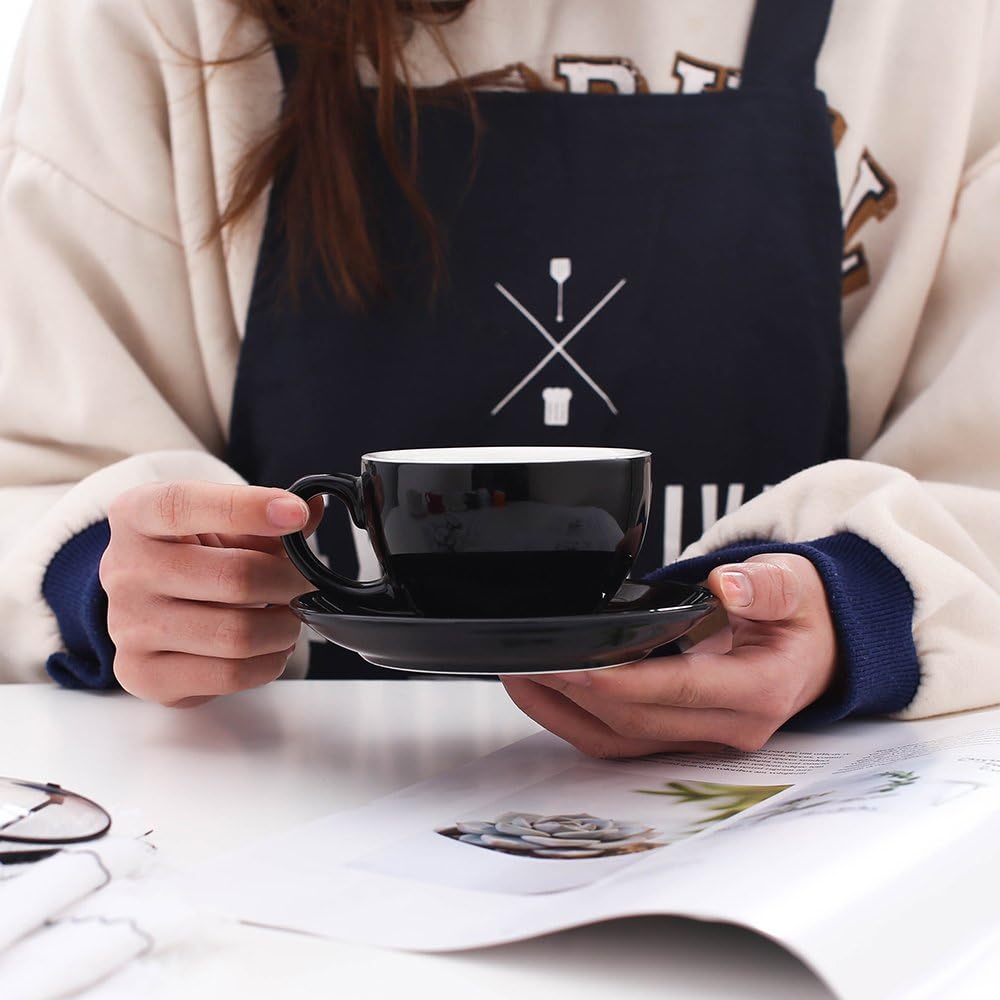 Free Pour Coffee Cup and Saucer, Small Cappuccino and Double Espresso, Ceramic Coffee Cups for Coffee Shop and Barista (Glossy Black, 5 oz)