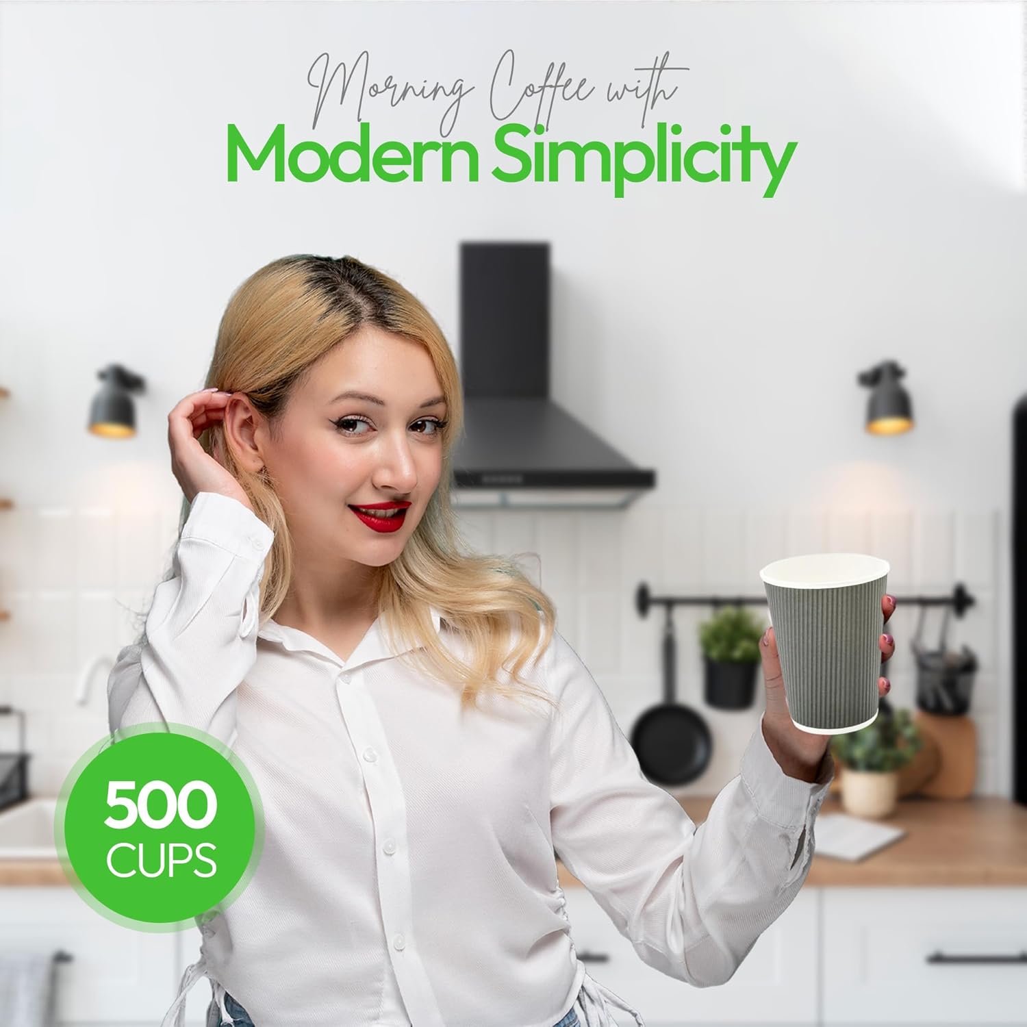 Restaurantware-12 Ounce Disposable Coffee Cups, 500 Ripple Wall Hot Cups For Coffee - Lids Sold Separately, Rolled Rim, Gray Paper Insulated Coffee Cups, For Hot Coffee, Tea, And More