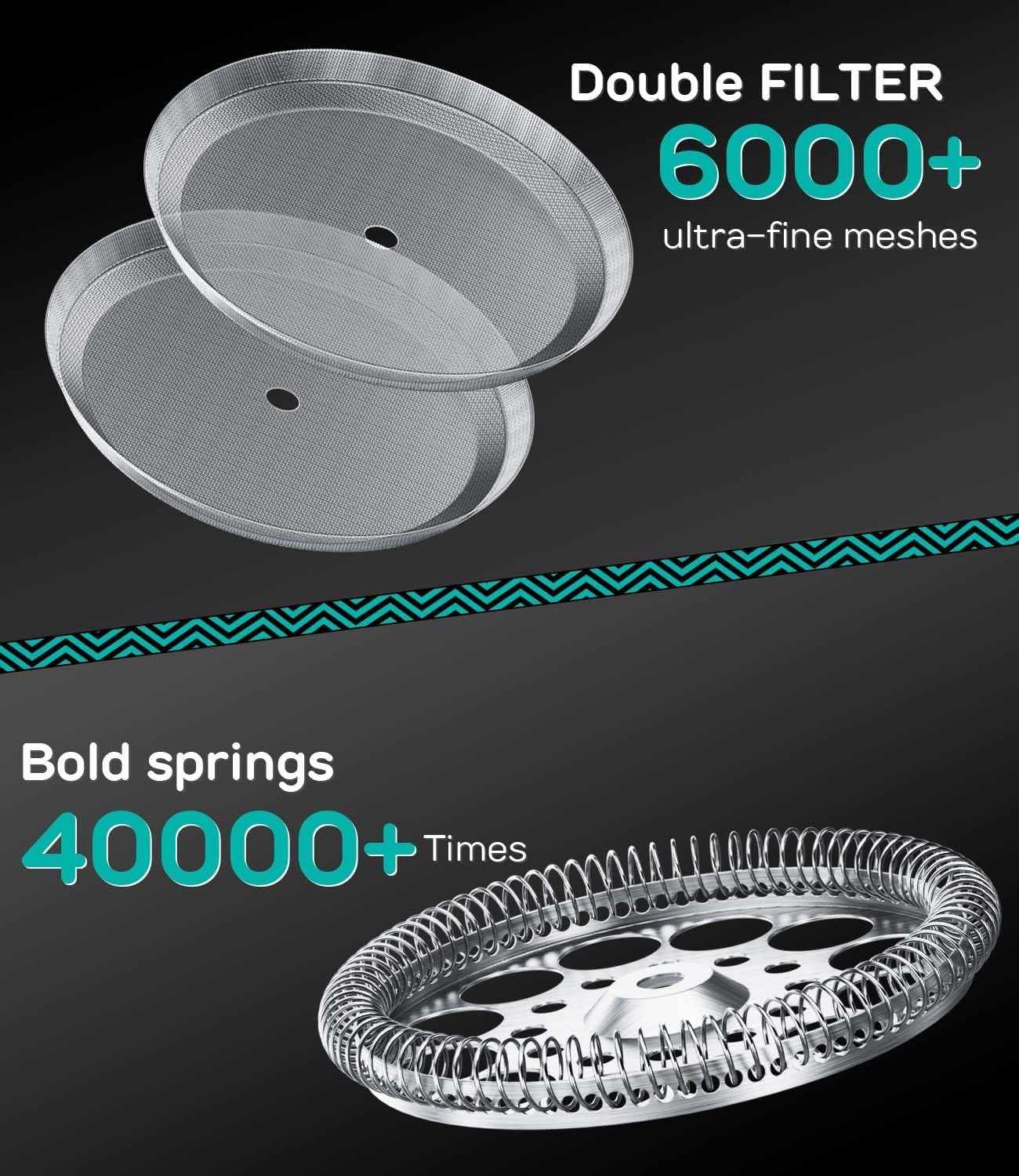 - Unique & next level design, The coffee french press is uniquely designed to keep sediment out of your cup while letting the delicious coffee oils into it. This results in a richer, full-bodied brew that will leave you grinning from ear to ear