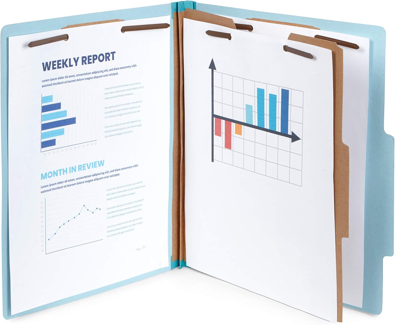 - Perfect for storing over 100 files or larger bulky files with our durable 4 section classification folder with thick 25pt blue press board, 17pt Kraft paper divider, and strong 2’’ Tyvek expansion