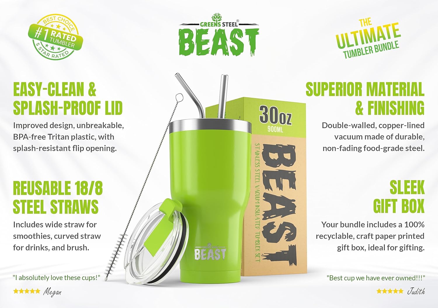 Beast 30 oz Tumbler Stainless Steel Vacuum Insulated Coffee Ice Cup Double Wall Travel Flask (Lemongrass Green)