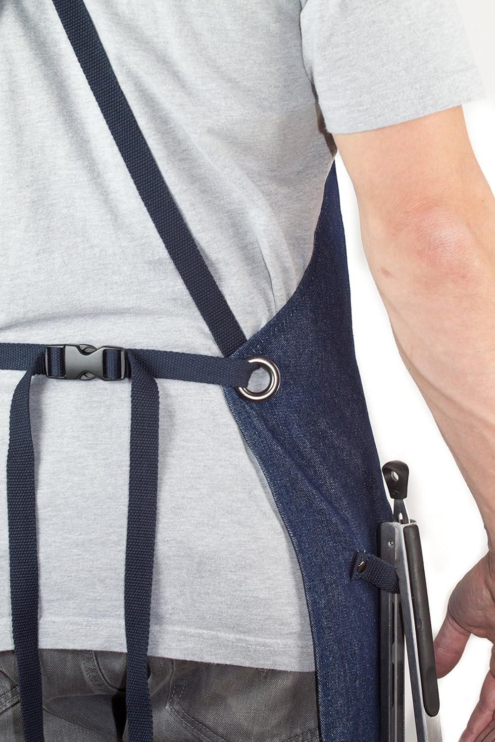 - Denim Durability – Your chef apron will be there for you for years to come. Tough denim, metal-riveted pockets, and reinforced stitching come together to make this apron a wearable fortress.