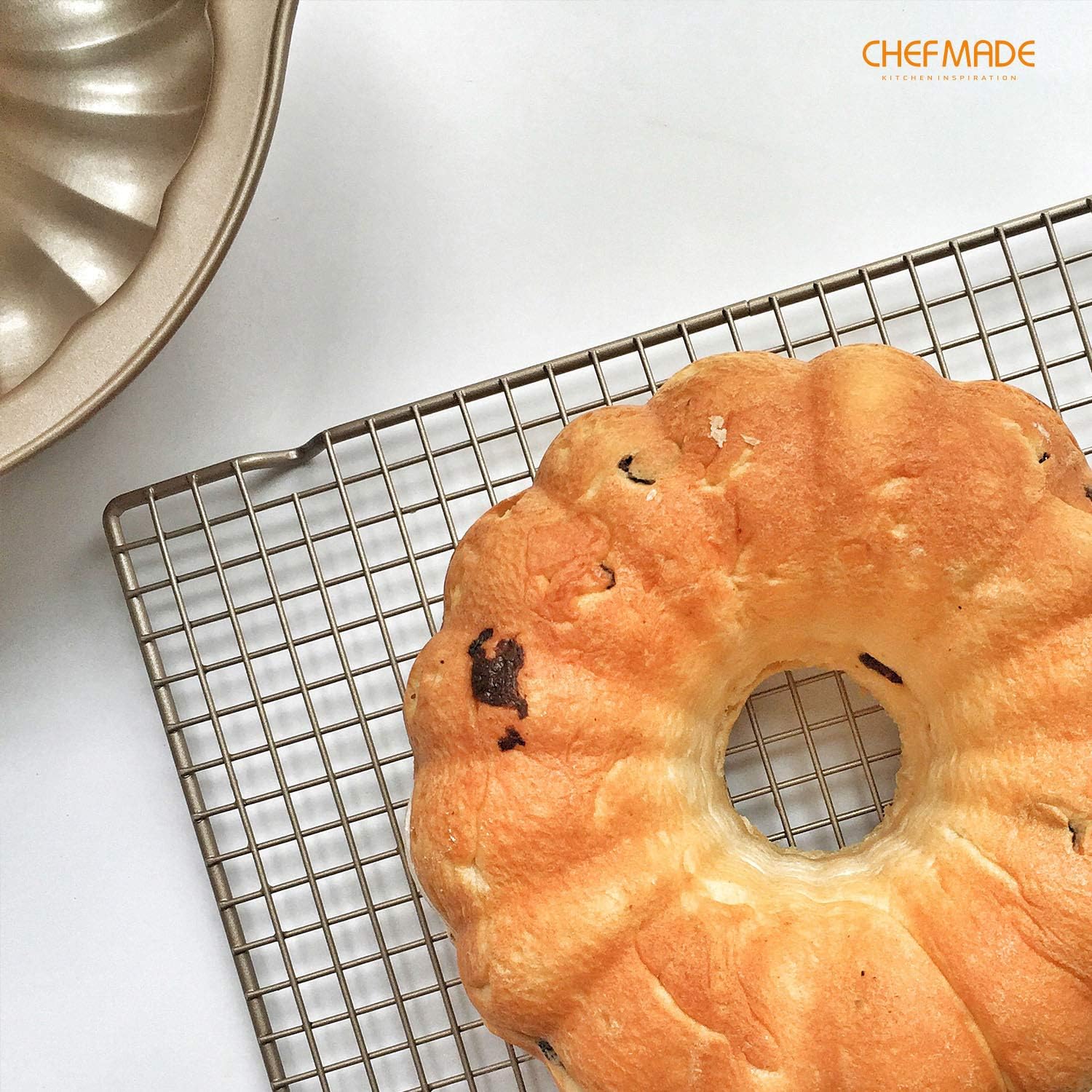 CHEFMADE Baking and Cooling Rack, 16.3-Inch Non-Stick Bold-Grid Design Rectangle Wire Rack for Oven Baking (Champagne Gold)