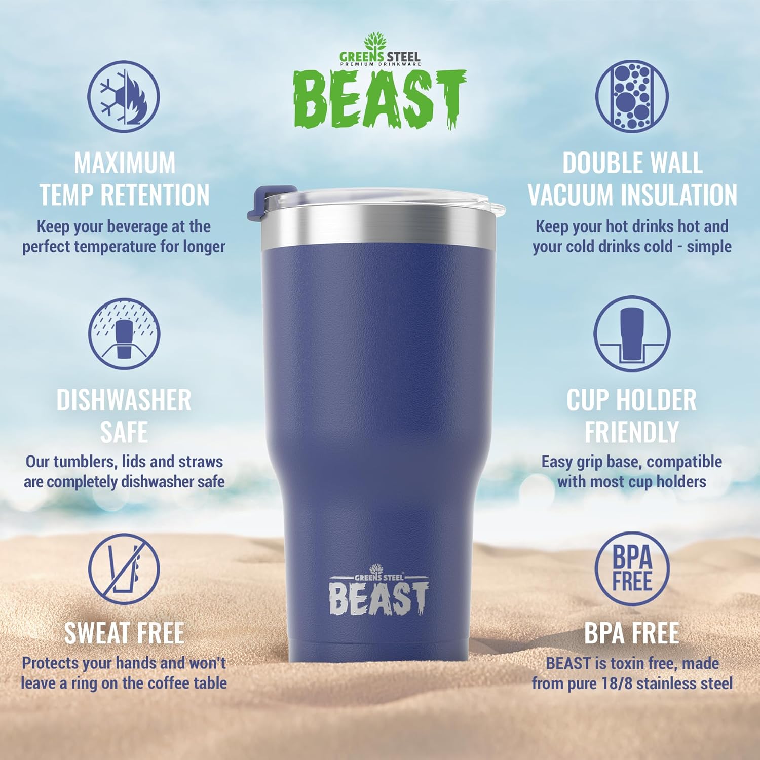 Beast 30 oz Tumbler Stainless Steel Vacuum Insulated Coffee Ice Cup Double Wall Travel Flask (Royal Blue)