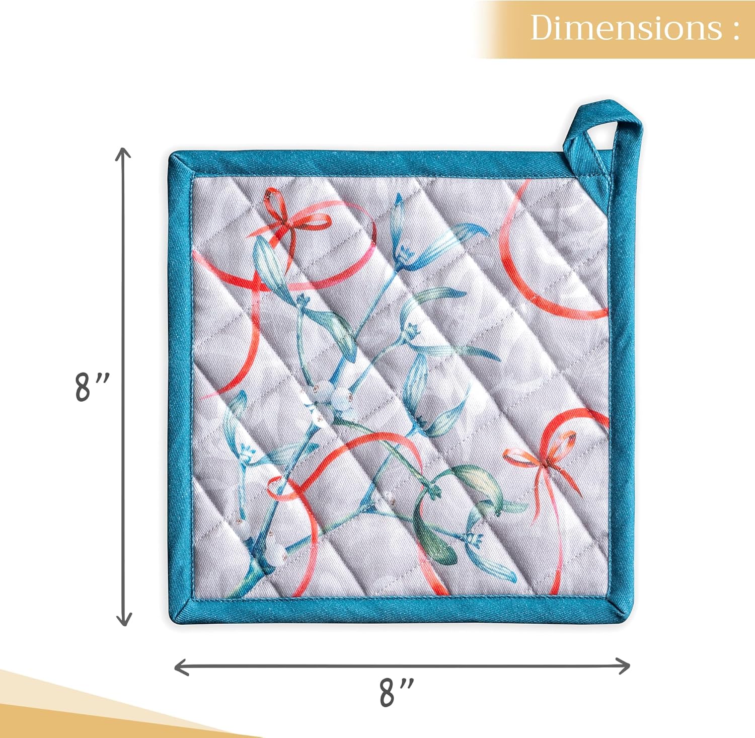 Maison d' Hermine Pot Holders Set 100% Cotton Heat Resistant Potholders 8" x 8" Hot Pads with Loop BBQ, Cooking, Baking, Grilling, Kitchen, Handling Hot Pans (Pack of 1, Enora)