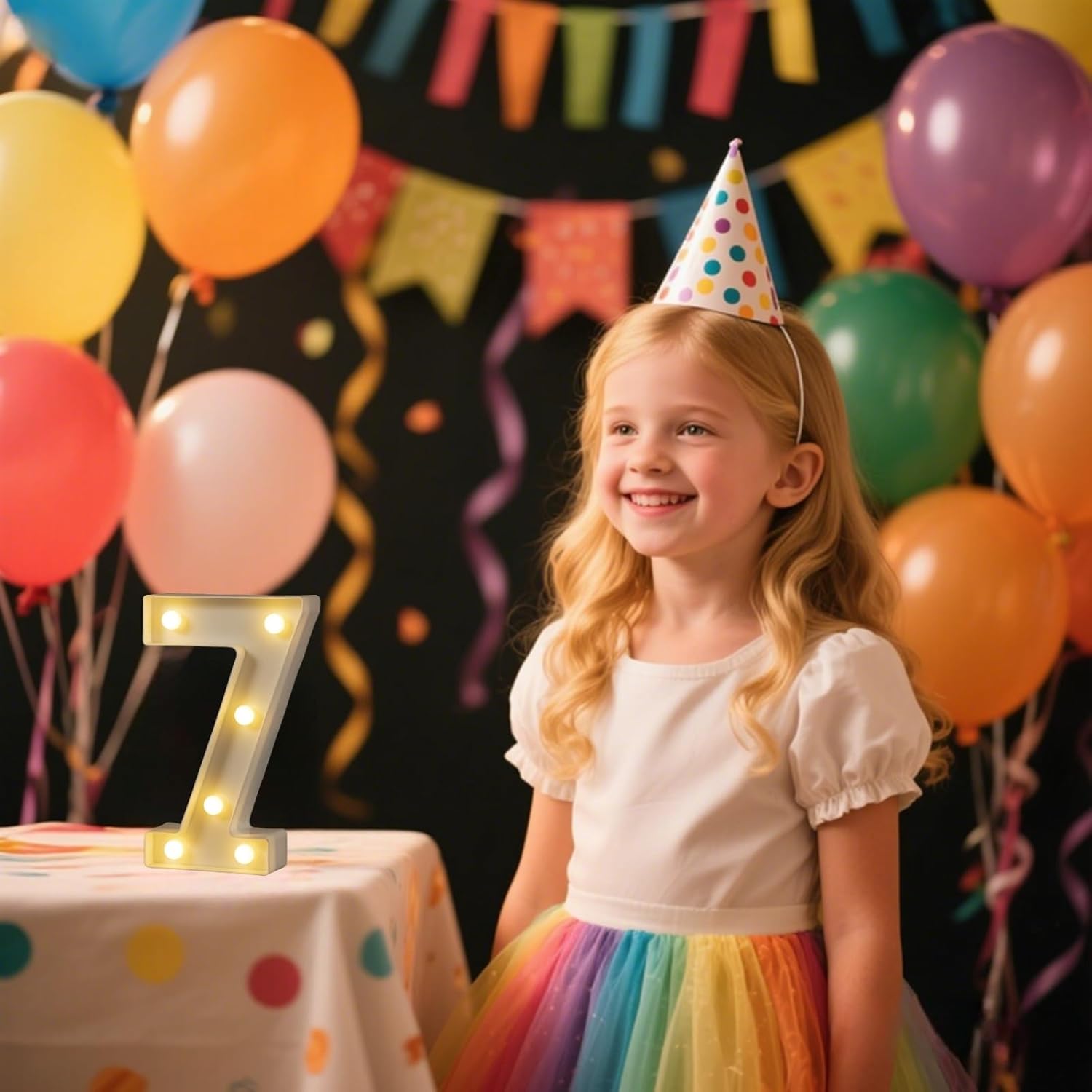 Foaky Decorative Led Marquee Light Up Number, Marquee Light Up Number Sign for Night Light Wedding Birthday Party Christmas Home Bar Decoration Number(7)