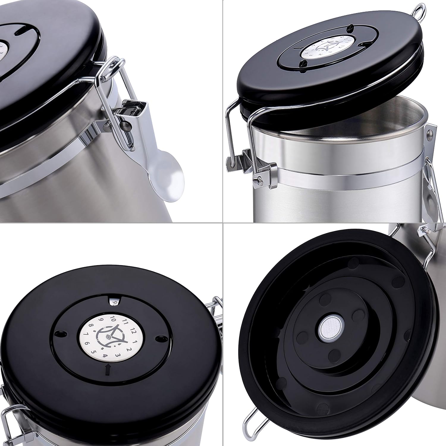 - 1❤ WITH MORE HEALTHY MATERIAL-- Magicafé AIRTIGHT COFFEE BEAN CONTAINER is made of 18/8 food grade premium stainless steel with 16OZ Capacity. This Magicafé AIRTIGHT COFFEE CANISTER is sturdier and rust-free for many years.As a professional and responsible manufacturer,we never compromise on quality. We promise to provide excellent coffee canister to meet your satisfaction.