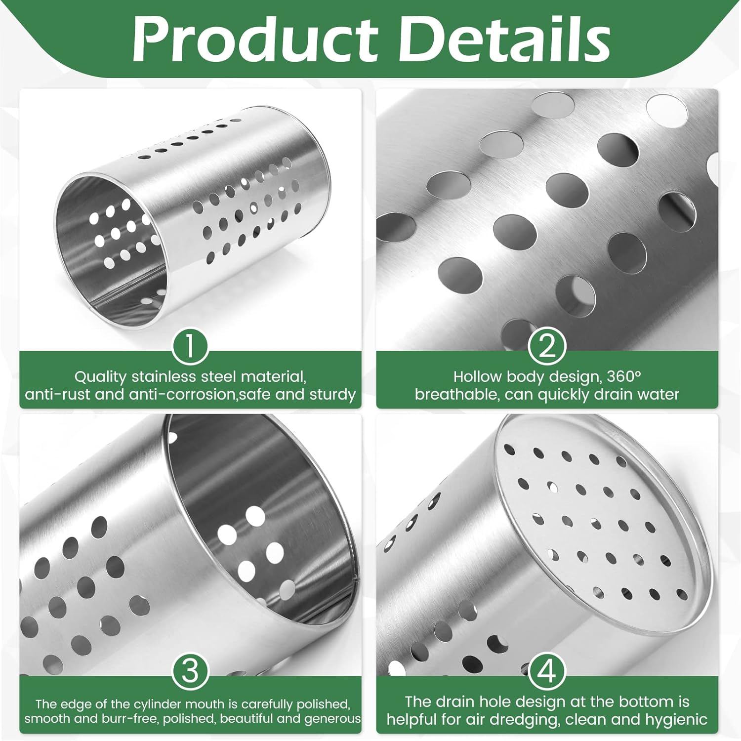 EORTA Stainless Steel Kitchen Utensil Holder Flatware Cylinder Silverware Draining Organizer Drying Rack with Round Drain Holes for Forks, Knives, Spoons, Chopsticks, Medium