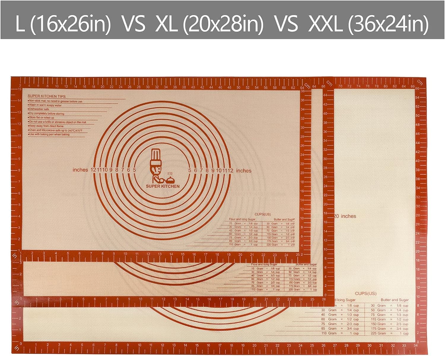 - Nonslip back side and Multifunction:We upgraded the back non-slip design。It will stay good on the table when rolling dough.It is good for Pastry Mat(24×36 inches),Table Mat,Baking Mat (Temperatures from -30°F to 470°F ),Pizza Pad and Countertop Mat.