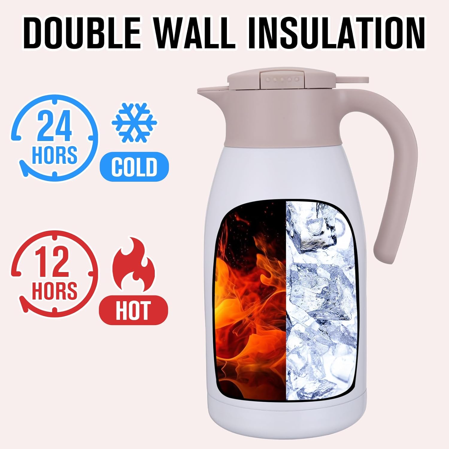 GiNT 1.9L / 64Oz Thermal Coffee Carafe, Insulated Stainless Steel Coffee Carafes for Keeping Hot/Double Walled Vacuum Thermal Carafe (White)