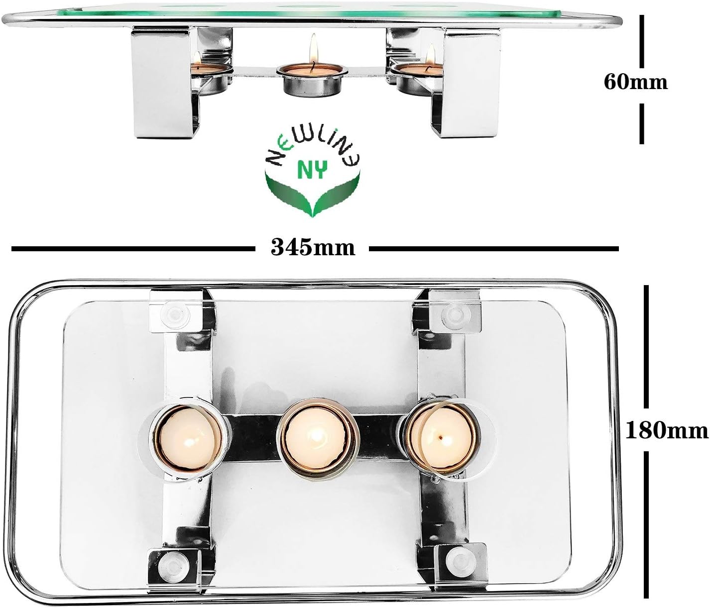 NewlineNY Chrome Plated Glass Dish Warmer, Rectangular Glass-Top 3 Holes Tea Light Votive Candle Gourmet Food Warmer