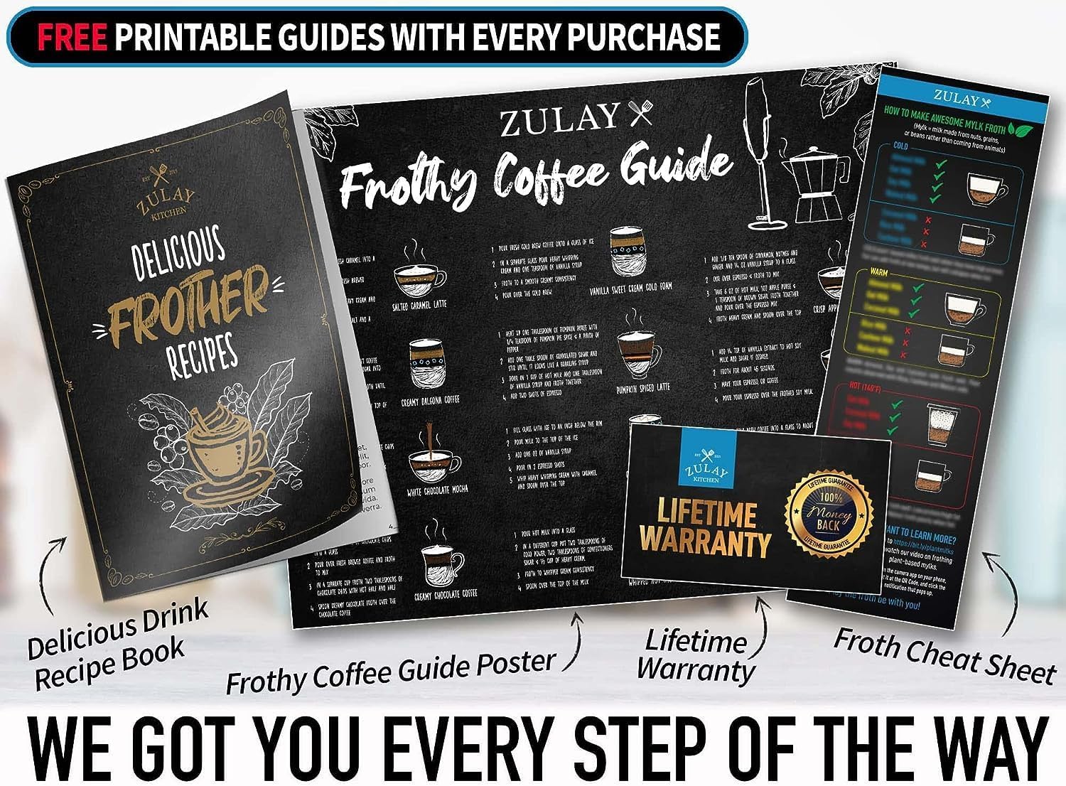 - NO HASSLE, ZULAY GUARANTEE: We love and take pride in our milk frother and we back this up with a lifetime guarantee. Have the confidence that this frother will last, if there are ever any issues, just contact us and we will make it right. Order now and be assured that this product will live up to your expectations, guaranteed.