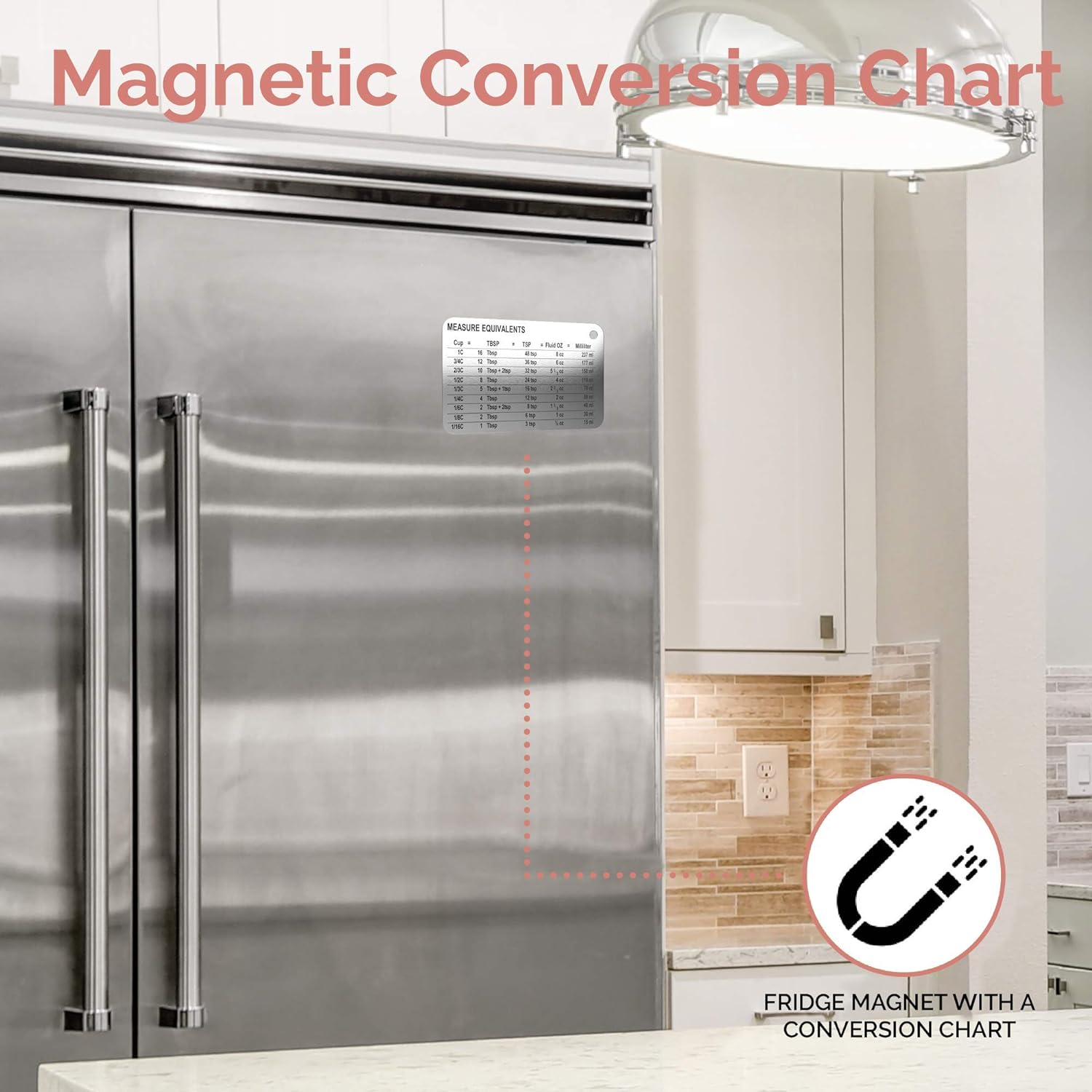 22-Piece Stainless Steel Measuring Cups and Spoons Set, Tad Dash Pinch Smidgen Drop Mini Measuring Spoons, Measuring Stick Leveler, Measurement Conversion Chart Fridge Magnet, (Country Chic)