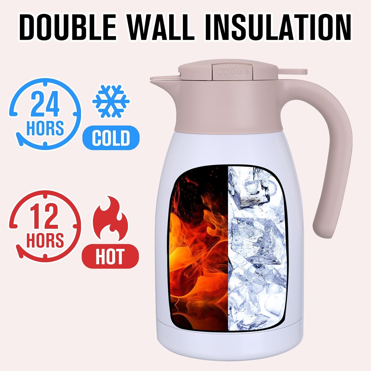 - USER FRIENDLY: GiNT thermal carafe features extra wide top opening, easy for cleaning and adding ice cubes; Simple-push button enables single-hand pouring without leaking, dripping or spilling; Ideal used for bedside, restaurant, office, party, camping, travel insulated coffee carafes.