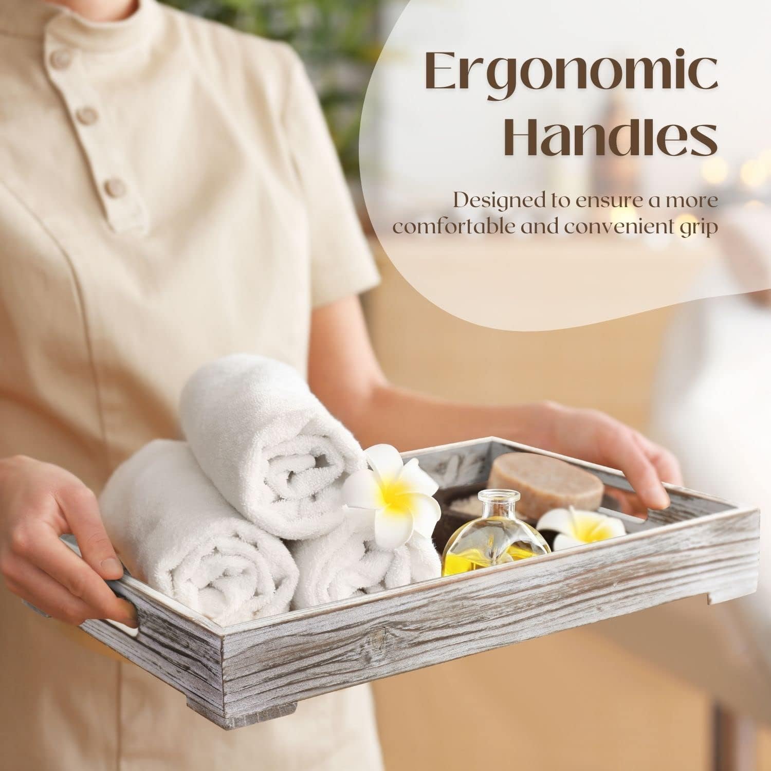 - Versatile Wood Serving Tray - Beyond serving, these wooden trays with handles decorative can also be used to organize small household items like keys and cosmetics, or as a wooden tray coffee table centerpiece