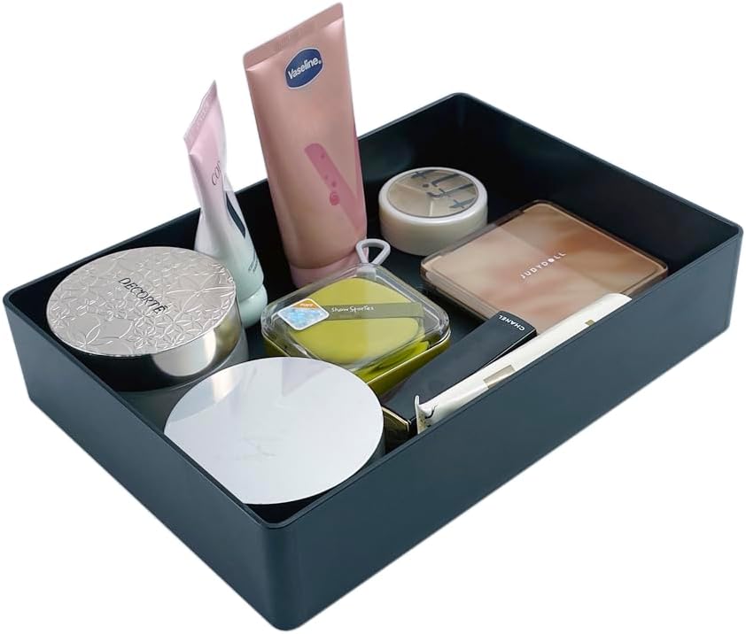 Amazon Basics Rectangular Plastic Desk Organizer with Storage Trays, Accessory Tray, 9.4 x 6.7 x 2 inch, Black, 1 Pack