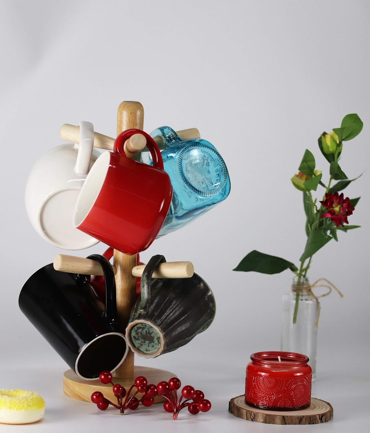 - The kitchen becomes neat and organized after using the Mug Holder Tree. The wooden frame is also ideal for hanging ornaments and other small items