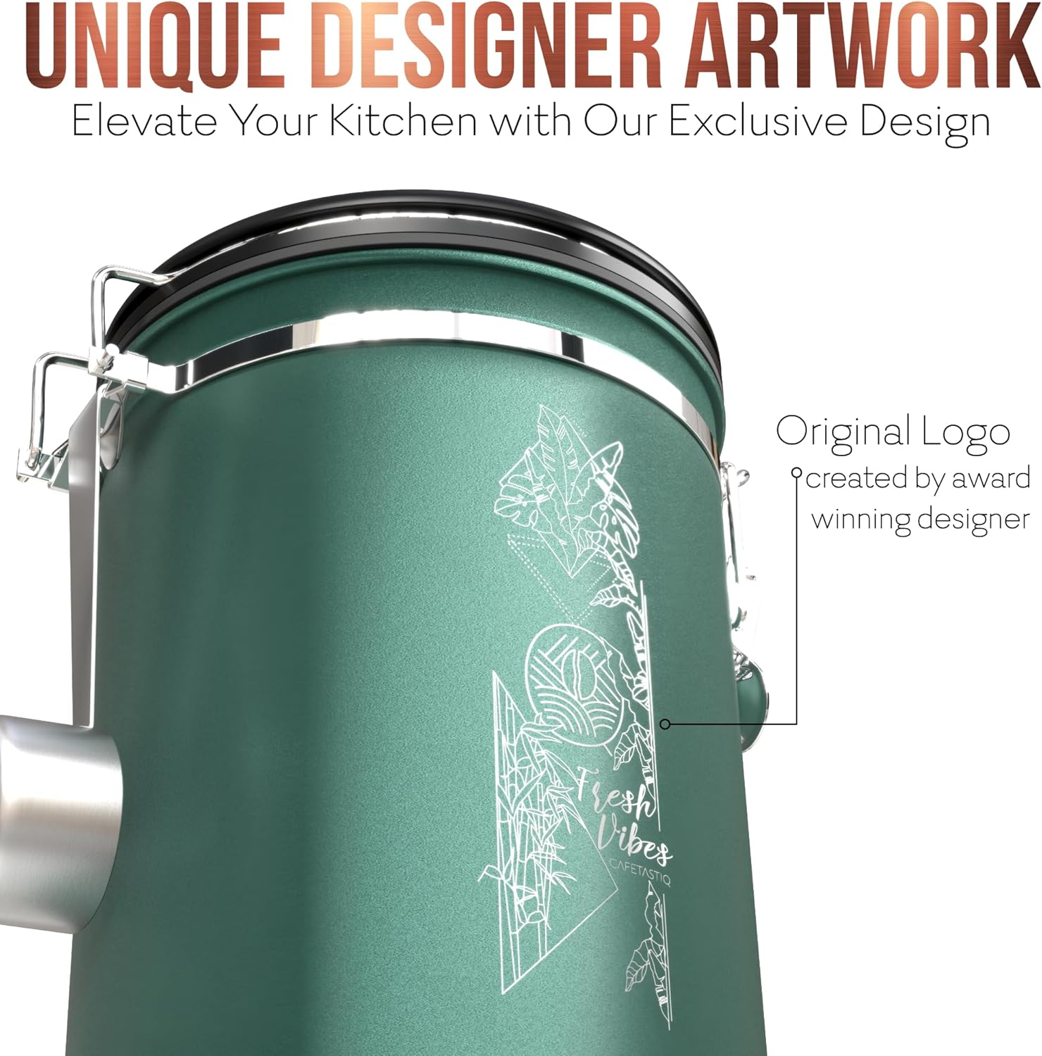 38oz / 22oz Coffee Canister – Airtight Stainless Steel Storage Container with Date Tracker & Scoop, Sealed Jar for Grounds, Beans, Tea, Flour, Cereal, and Sugar (Green Vibes, 38OZ)