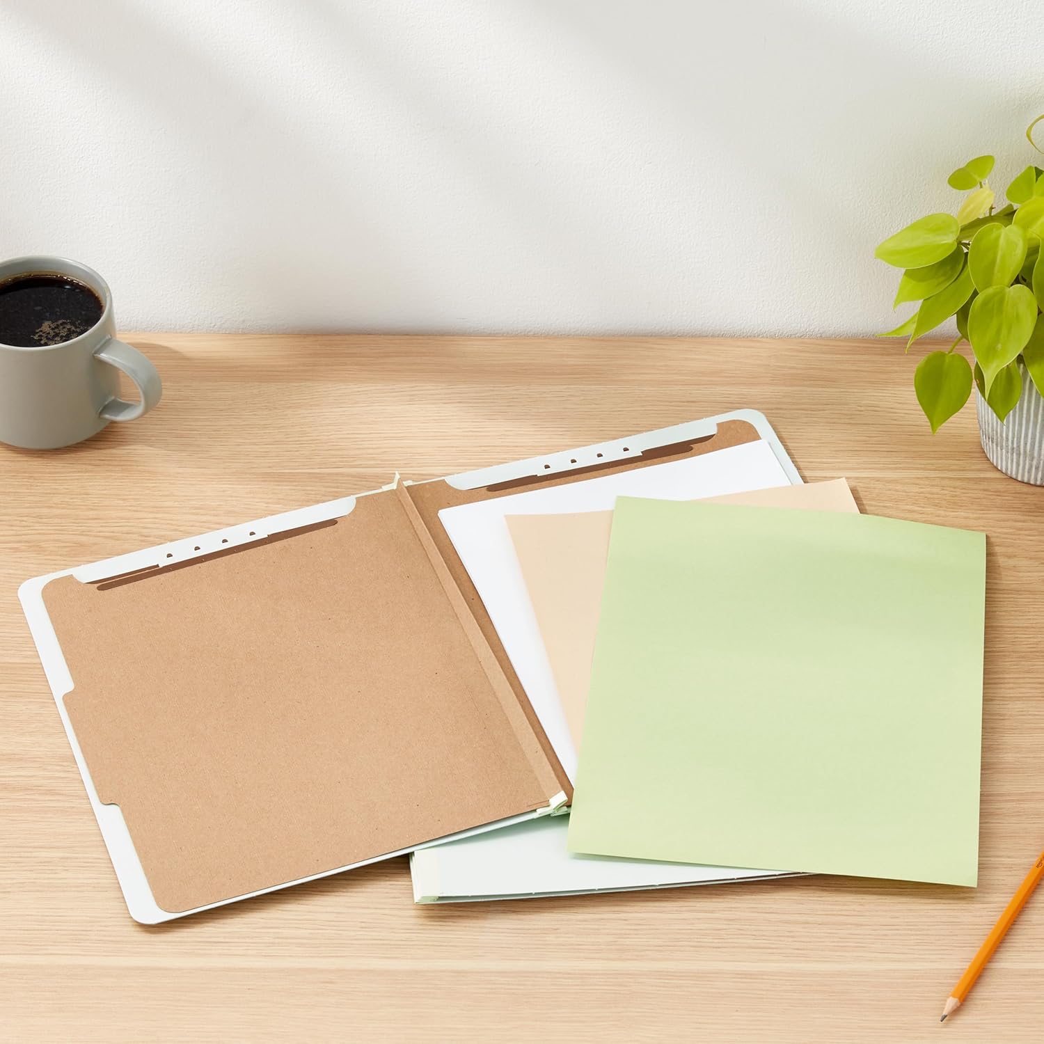 Amazon Basics Classification Folder- 100% Recycled, 1 Divider, 2-Inch Embedded, 12.05 x 10.47 inch (Letter), Light Green, 10-Pack
