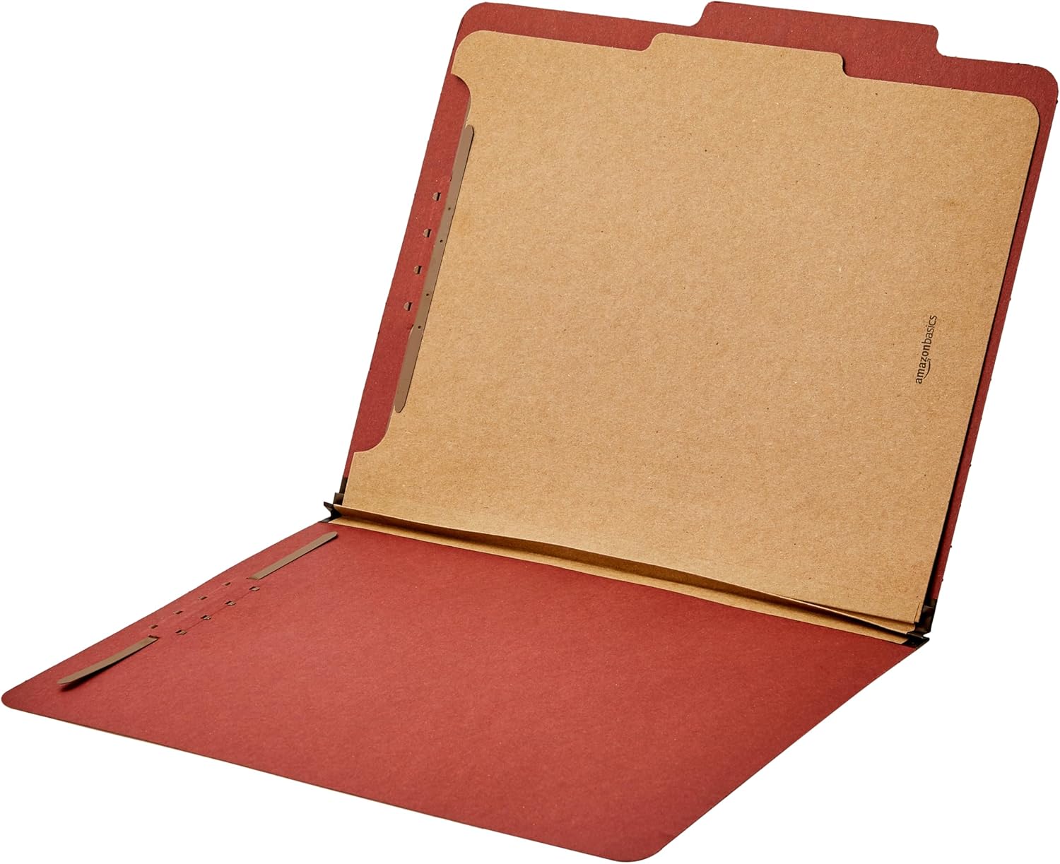 Amazon Basics Classification Folder- 100% Recycled, 1 Divider, 2" Embedded, 10 Count per Box, 12.09 x 10.63 inch (Letter), Red