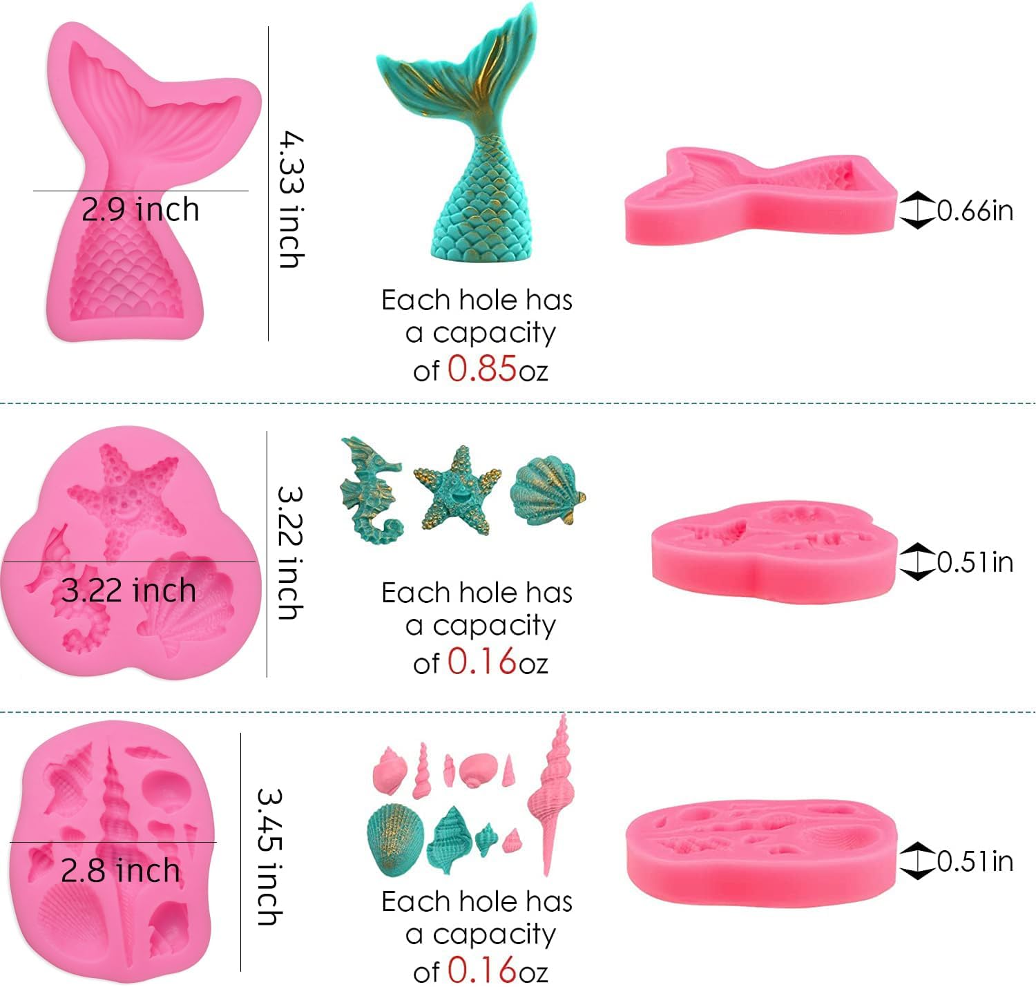 - 🐟Great set for our mermaid themed party! Once they are removed from the mold though - they are pretty solid. The mermaid tail seashells seahorse look amazing. You sprayed them with color mist and they look almost real!
