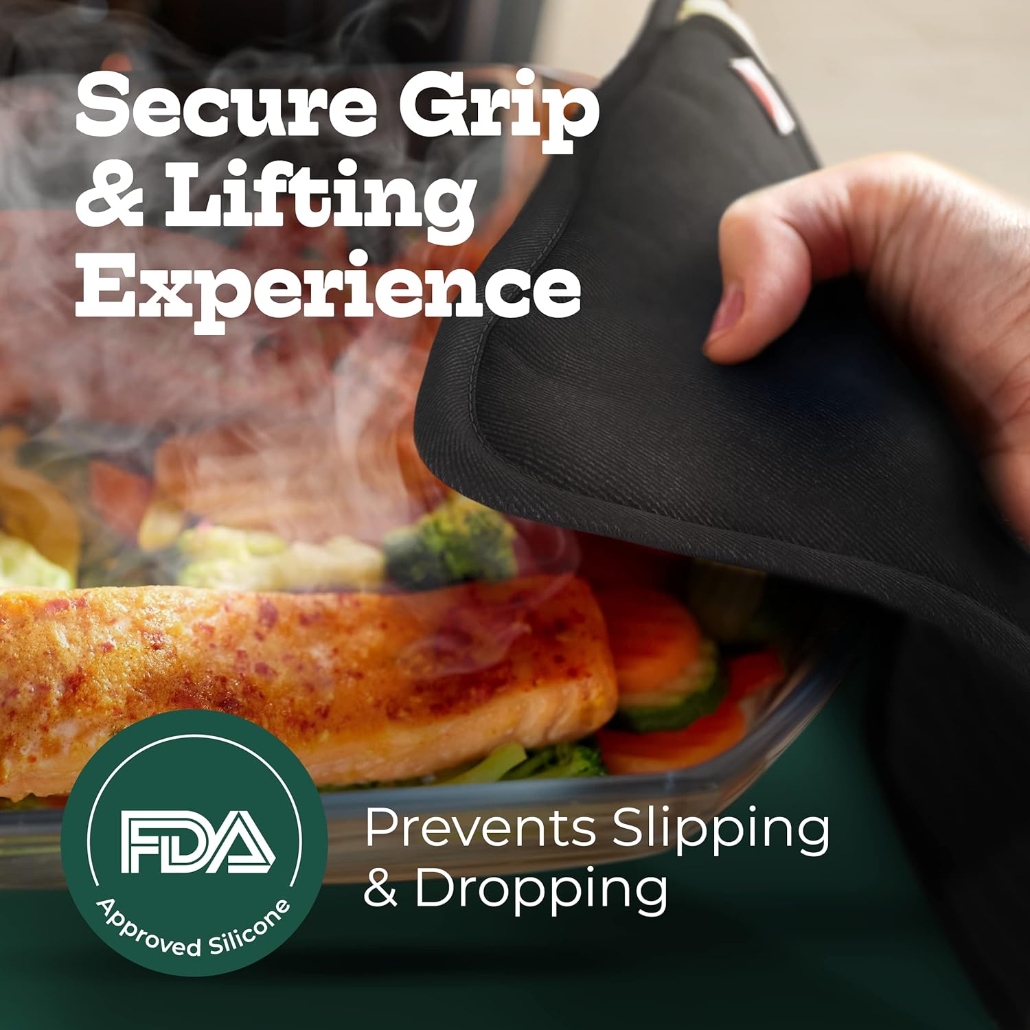 Big Red House - Silicone Pot Holders- Set of 2 Black- 10x3- Heat Resistant Kitchen Protectors for Hot Pans and Baking Professional Grade Cooking Mitts