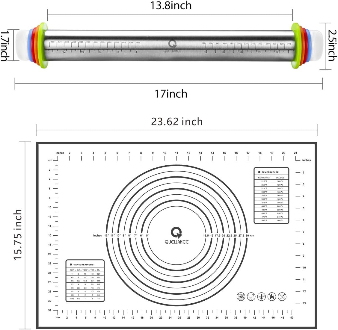 - [YOUR PERFECT HOMEMADE HELPER] - 4 sizes removable rings: 1/16, 1/8, 1/4, and 3/8 inch (2mm/4mm/6mm/10mm). Quellance stainless steel rolling pin is the perfect tool and companion in baking and cooking. Easy to knead dough to the intended thickness for a novice or an old hand.
