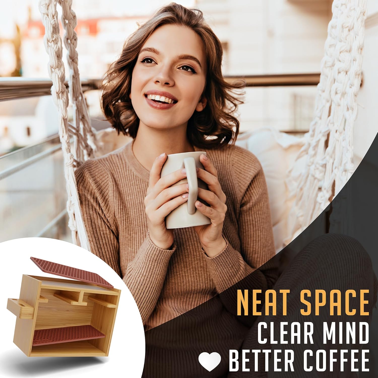 - QUALITY CRAFTSMANSHIP – Handmade with care from premium-grade bamboo and silicone, our caddy exudes quality and durability. Every detail is meticulously crafted to ensure your pour-over coffee setup is both functional and elegant. With its eco-friendly materials and superior craftsmanship, our coffee organizer station is a testament to excellence in coffee storage solutions.