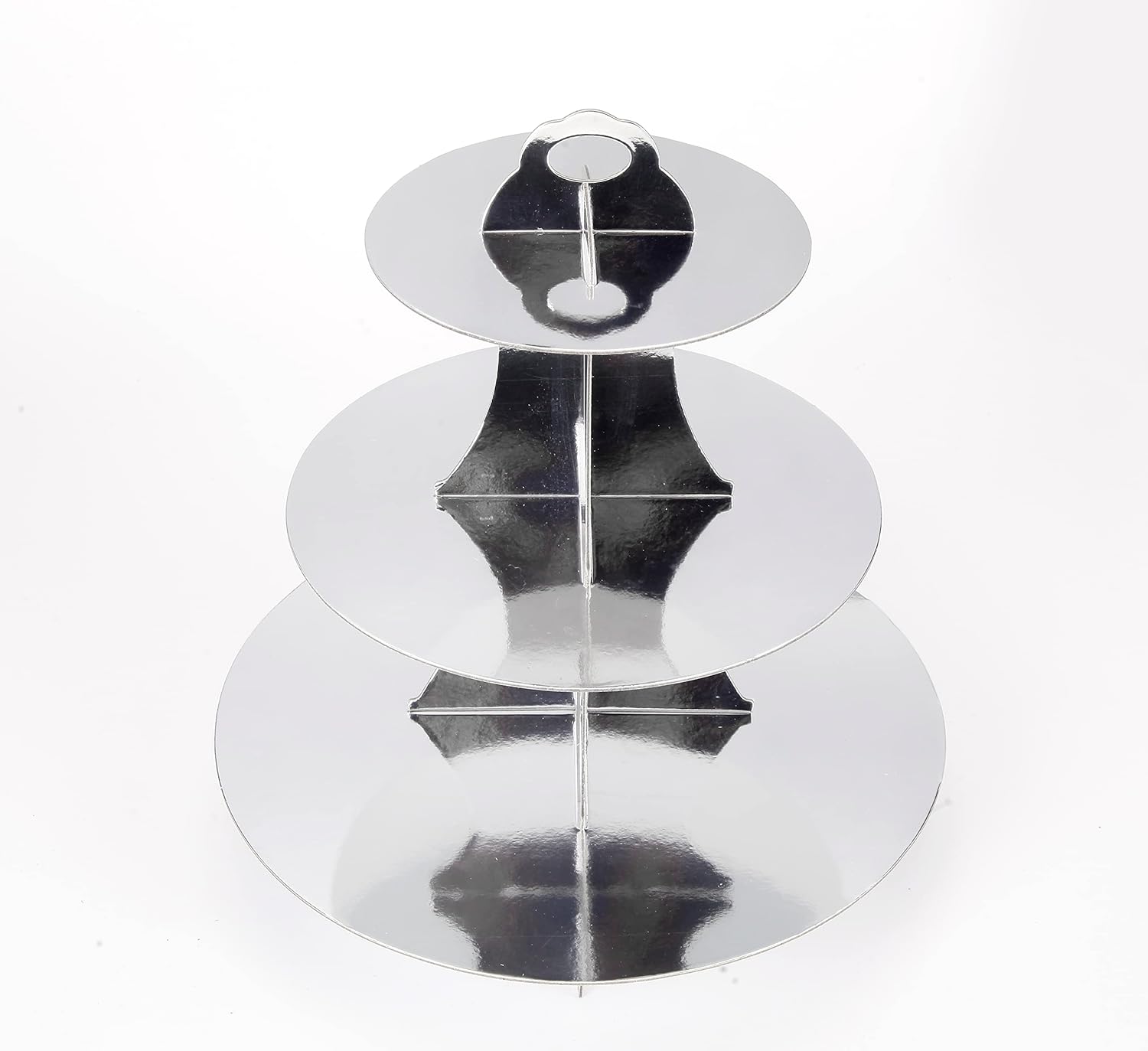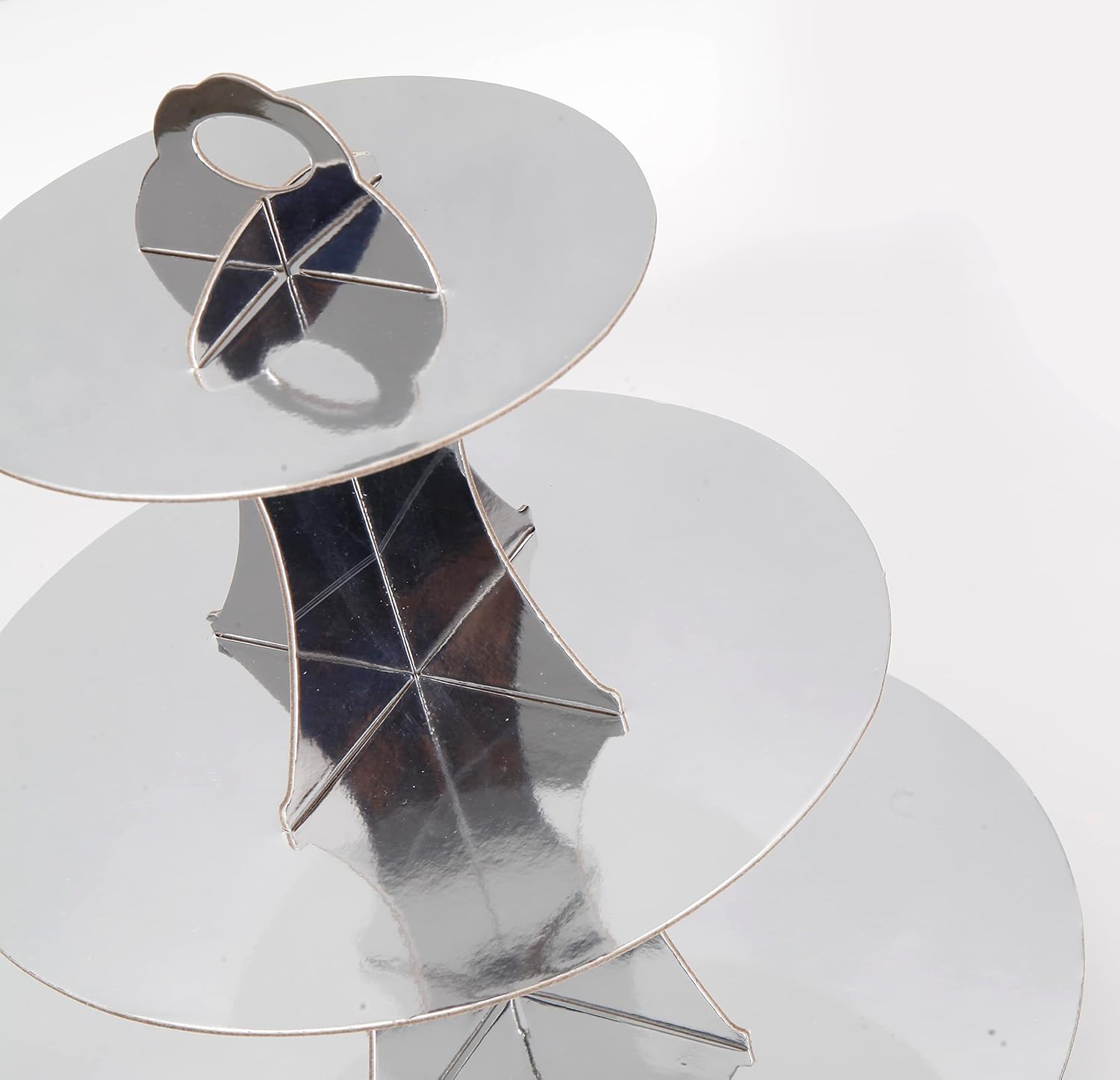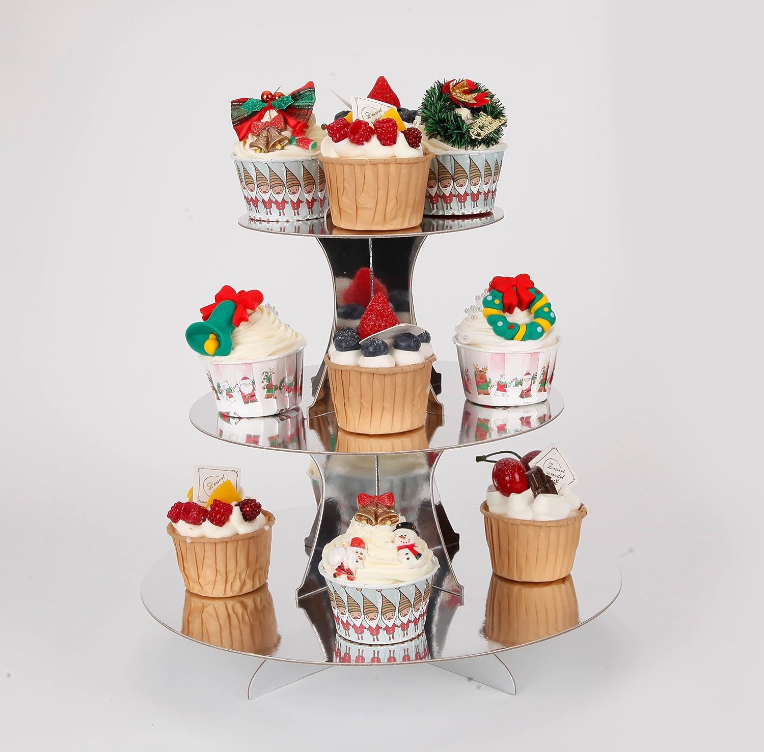 3-Tier Cupcake Stand, Sliver Cardboard Cake Stand Holder, Tiered DIY Cupcake Stand Tower for Dessert Table Displays, Birthday Theme Party Favors Decoration, Floral Tea Party, 12" W x 12.8" H