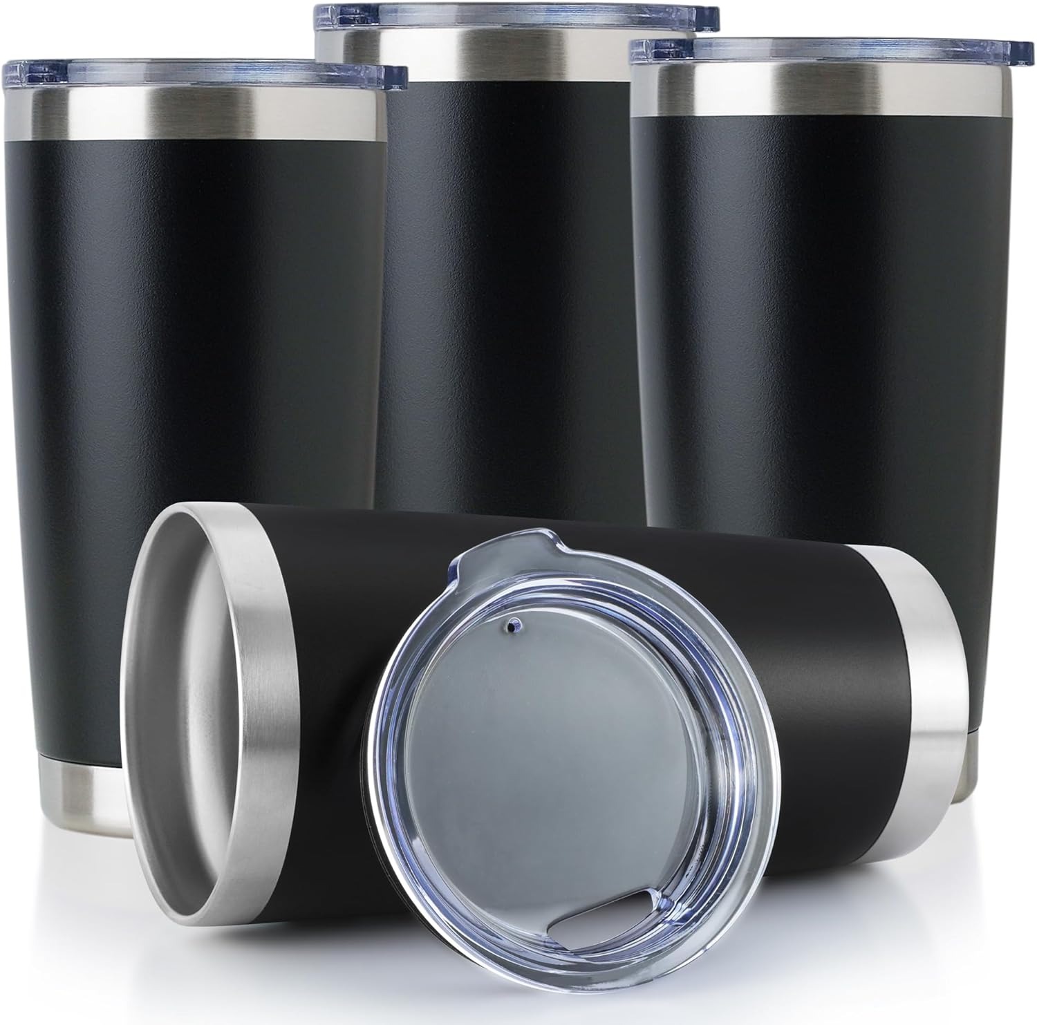 DOMICARE 20oz Stainless Steel Tumbler Bulk with Lid, Double Wall Vacuum Insulated Travel Mug, Powder Coated Coffee Cup, Powder Black, 4 Pack