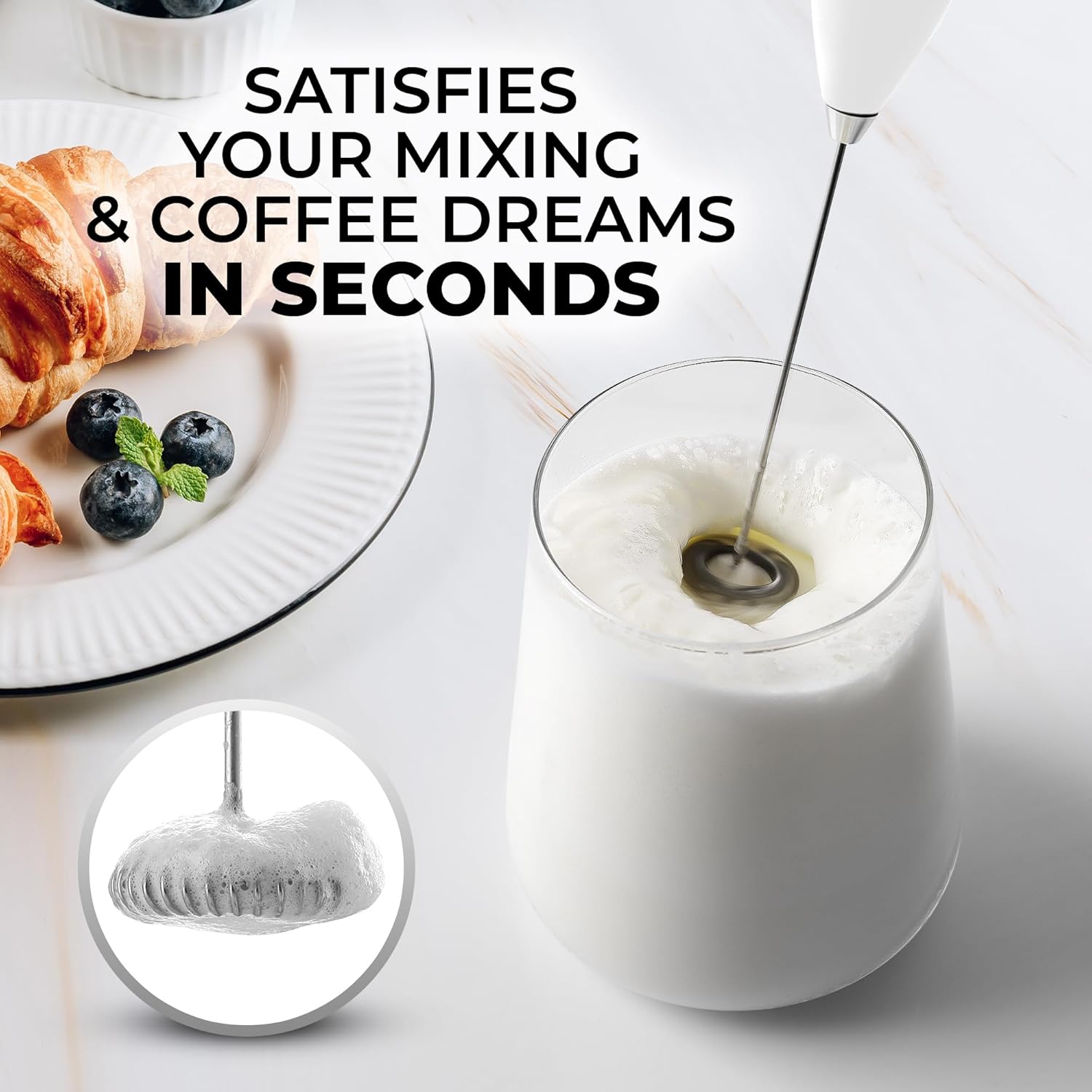 - FROTH WITH LOVE: It feels like you are sitting in a coffee shop when you sip a coffee topped with a thick and silky froth by our frother in the comfort of your home! This coffee frother can turn a small amount of milk or cream into foam in a few seconds with its powerful motor. Experience joy when this milk frother whisks up some magic into your latte, matcha, or cappuccino.