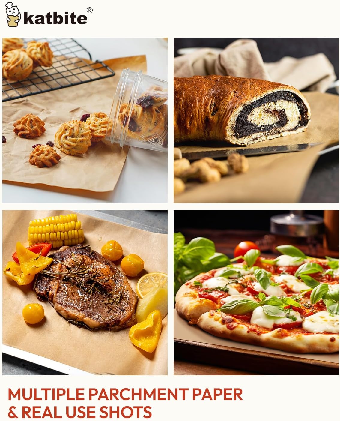 - NON-STICK & EASY TO CLEAN - Do you love baking but hate cleaning up? Katbite parchment paper for baking makes it possible and even works great! Food can be easily slide off from the baking tray and you just need to remove the paper and throw it away after baking.