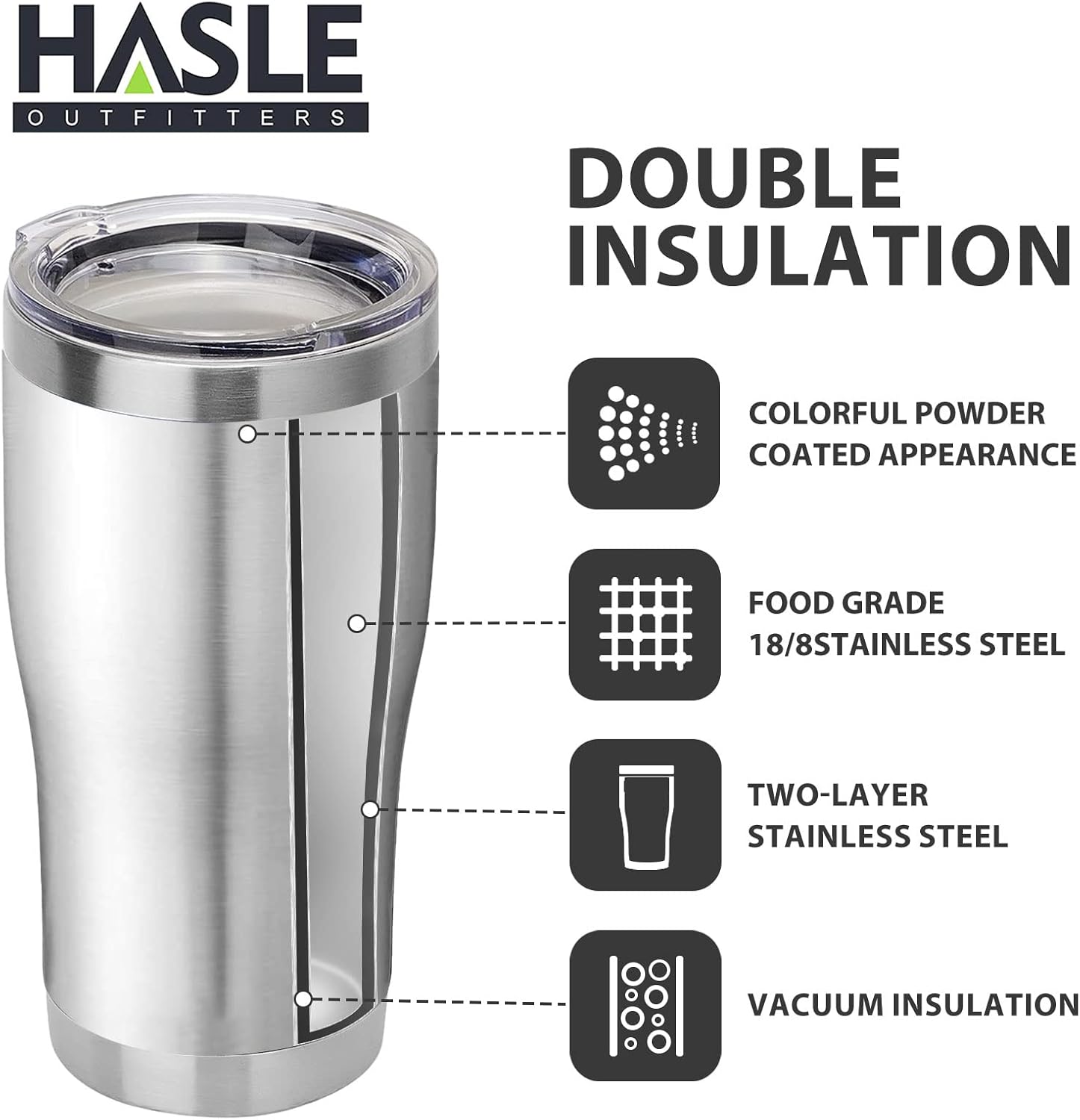 HASLE OUTFITTERS 20 oz Tumbler Bulk, Stainless Steel Tumblers with Lid, Vacuum Insulated Tumbler, Double Wall Tumbler Cup, coffee mugs, Stainless Steel, 6 Pack