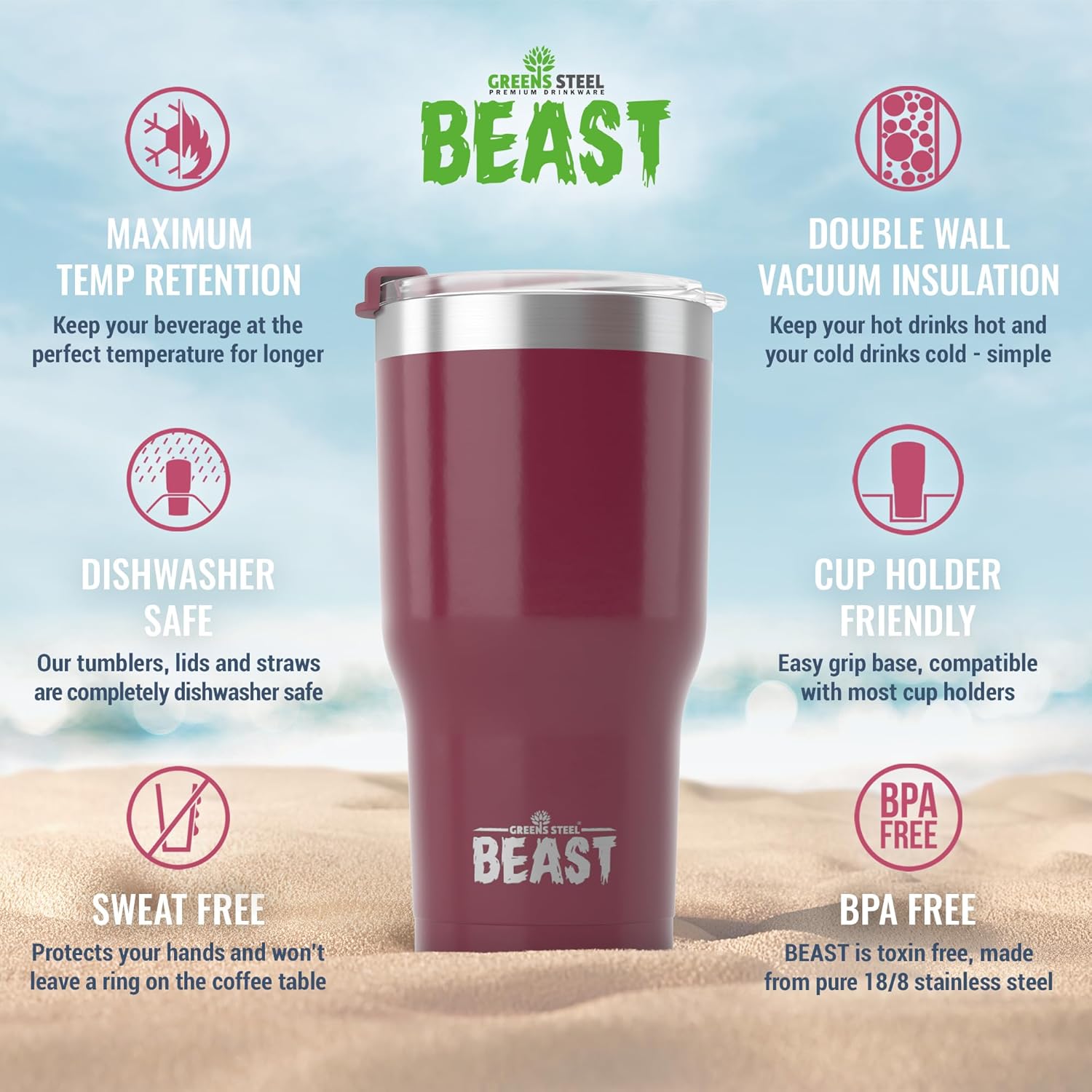 Beast 30 oz Tumbler Stainless Steel Vacuum Insulated Coffee Ice Cup Double Wall Travel Flask (Cranberry Red)