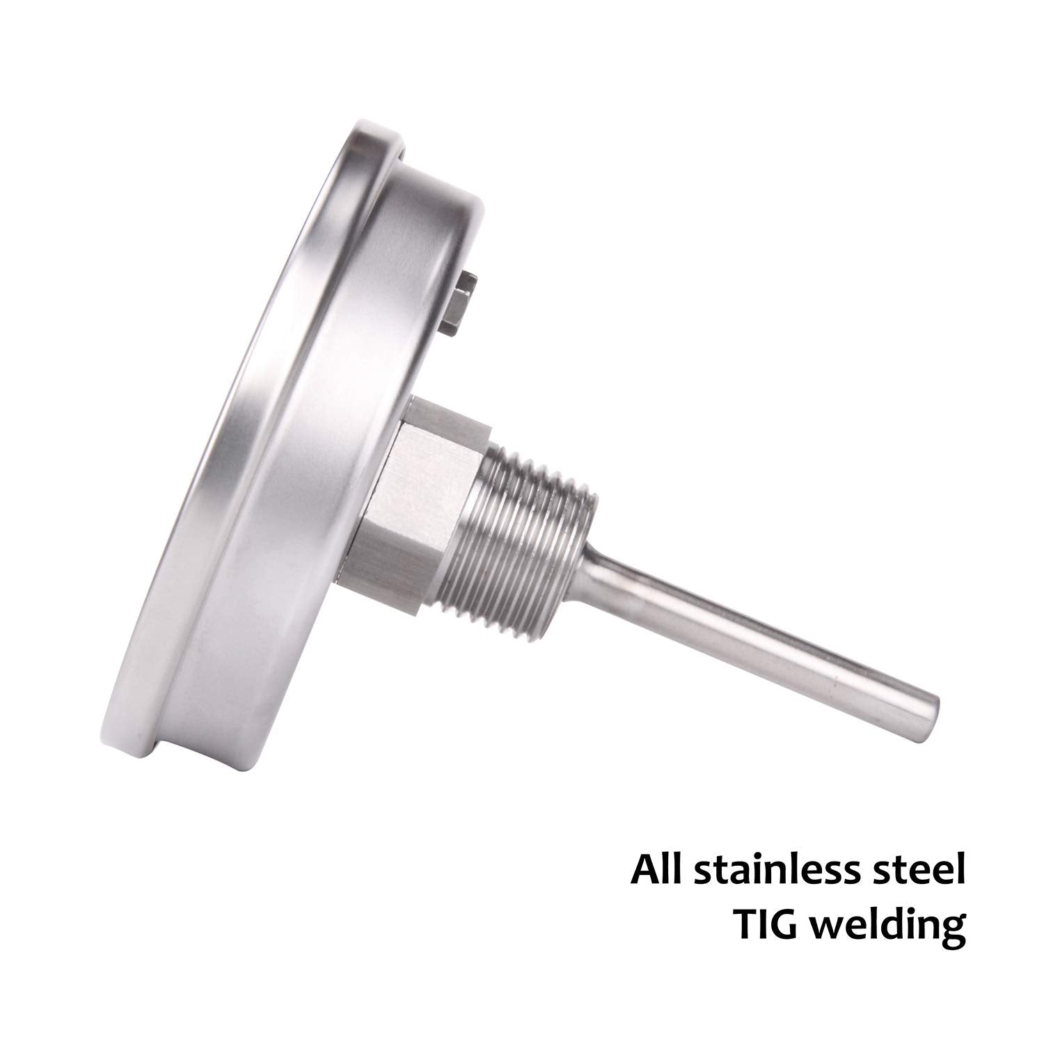 MEASUREMAN Fully Stainless Steel Pot, Kettle, Brewing Bimetal Dial Thermometer, 3" Dial, 2-1/2" Stem, -40-160 deg F/-40-70 deg C, -1% Accuracy, Adjustable, 1/2" NPT Back Mount
