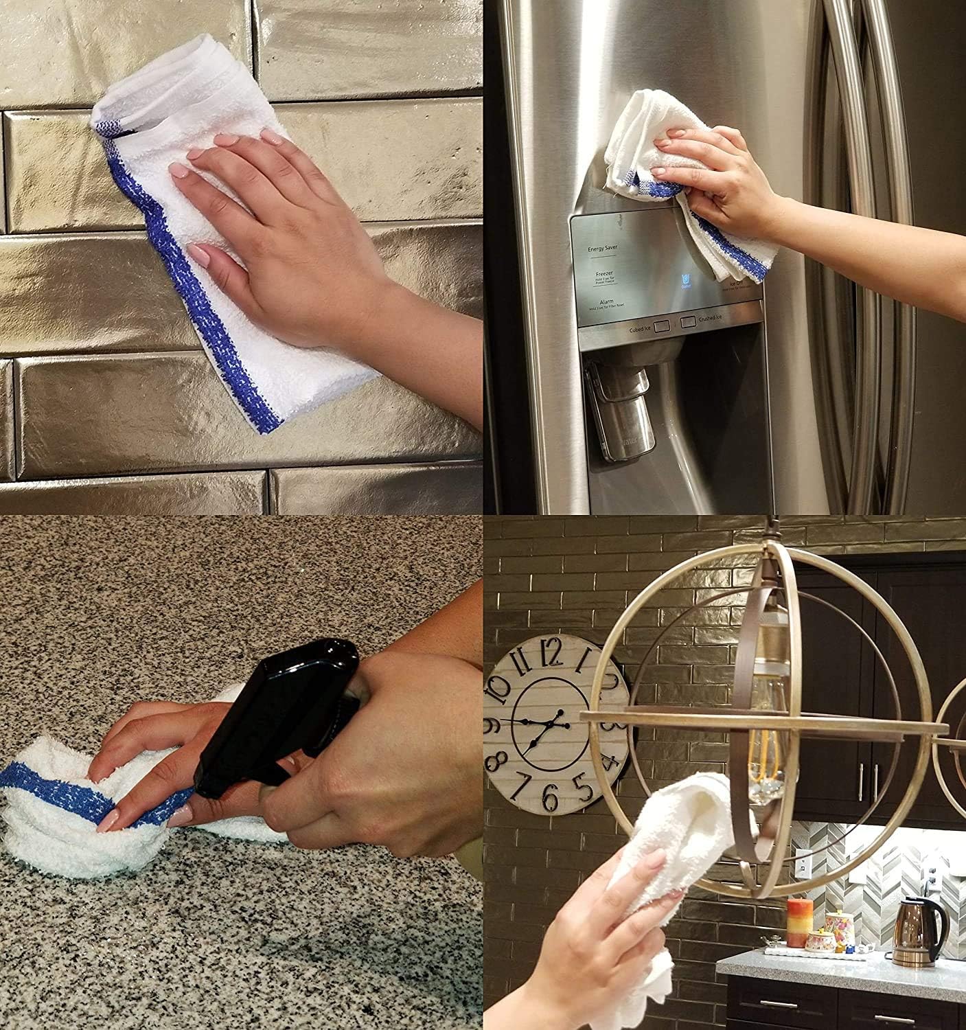 - Multipurpose: The utilization of white bar mop towels has been proven in commercial places and also a great substitution of paper towel in kitchen, house and office cleaning. The cotton blended Cleaning towels are the best for drying plates and cleaning surfaces. These towel rags are helpful in basic cleaning dishes, tiles, under skin, car and other surfaces that need to be dried after cleaning. The cotton towels are designed for the smooth absorption of the liquid and not leaving lint behind.
