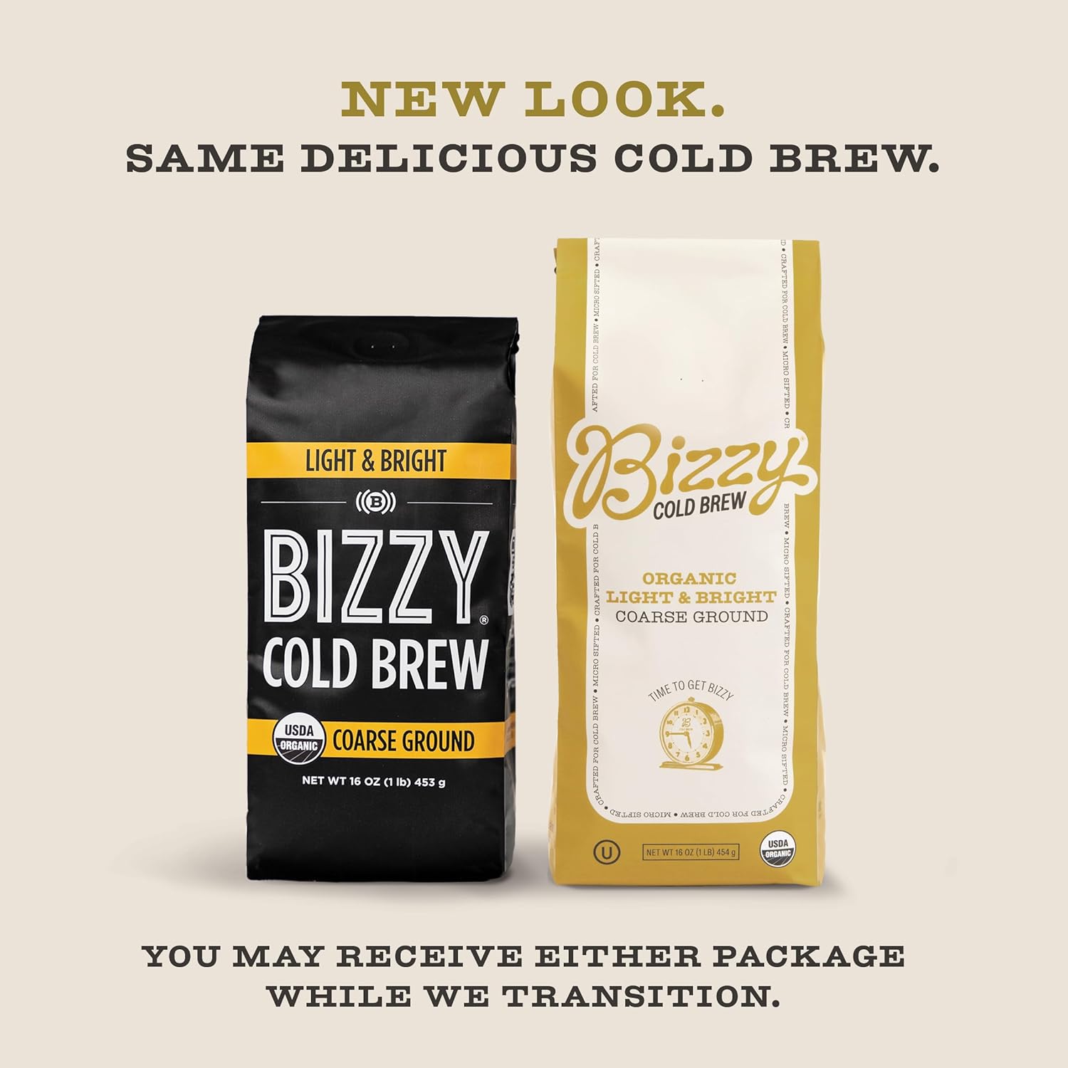 Bizzy Organic Cold Brew Coffee | Light & Bright Blend | Coarse Ground Coffee | Light Roast | Micro Sifted | Specialty Grade | 100% Arabica | 1 LB