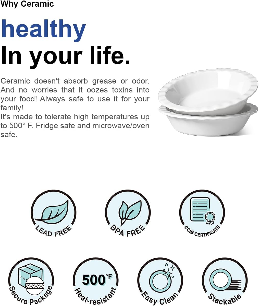 - Healthier Than Glass Pie Pan: The ceramic pie plate is made of using all-natural clay, water and gas; Each piece of pie tray is elegant and created with the finest detail; Compared to a glass or metal pie pan, the ceramic pie dish is free of heavy metals and doesn’t absorb food odors or flavors