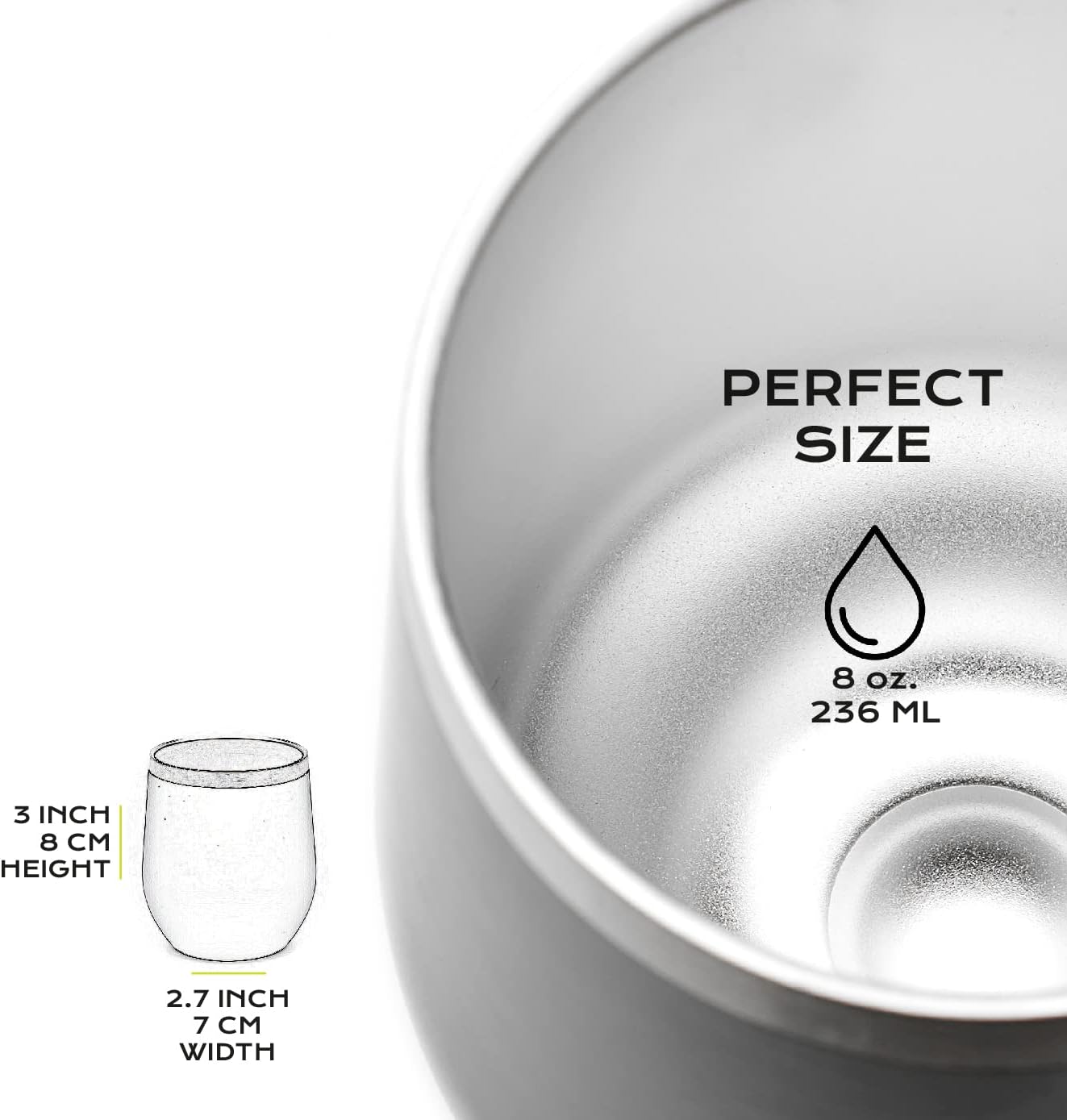 - Material Stainless Steel : Capacity 8 Fluid Ounces